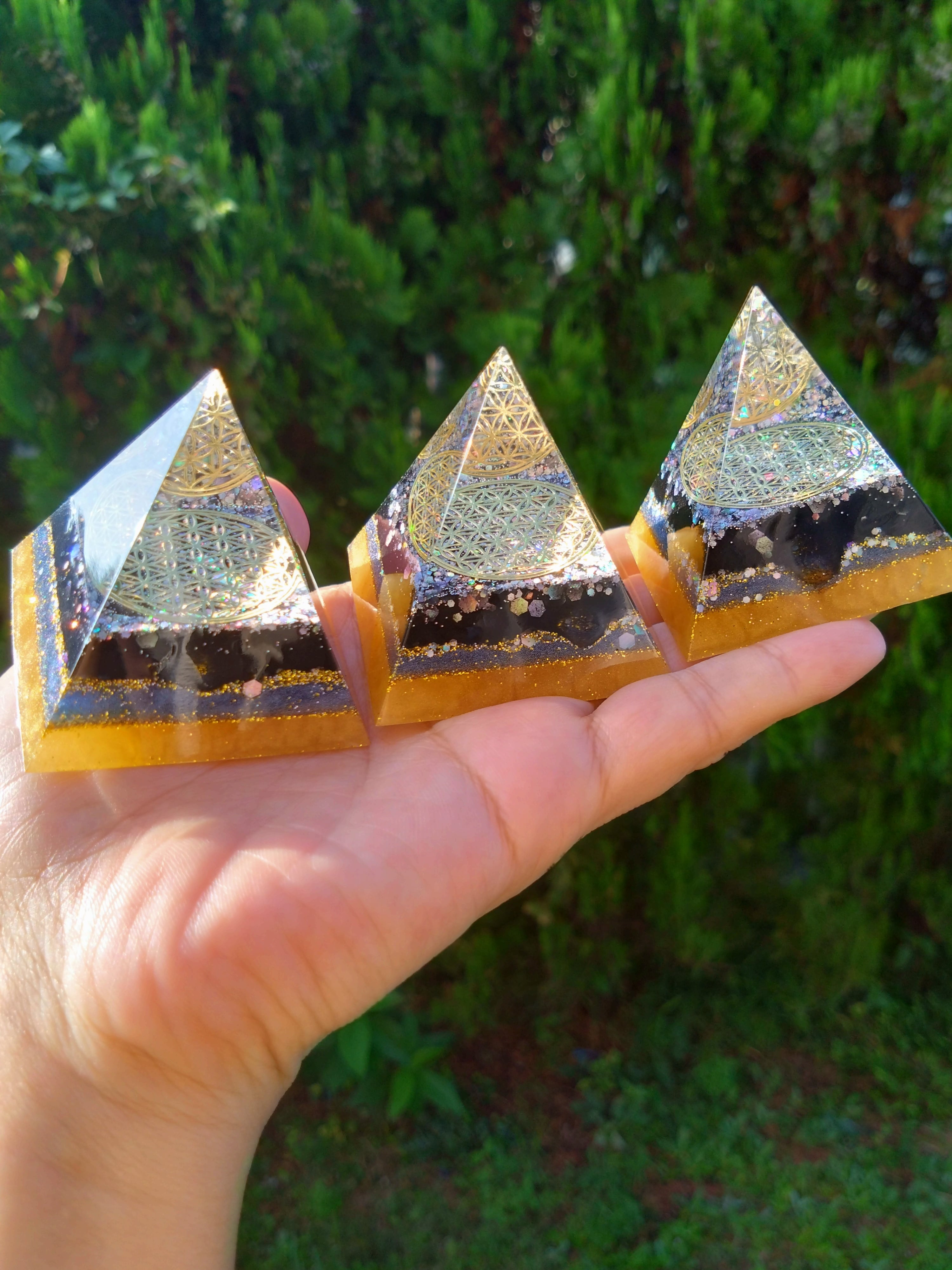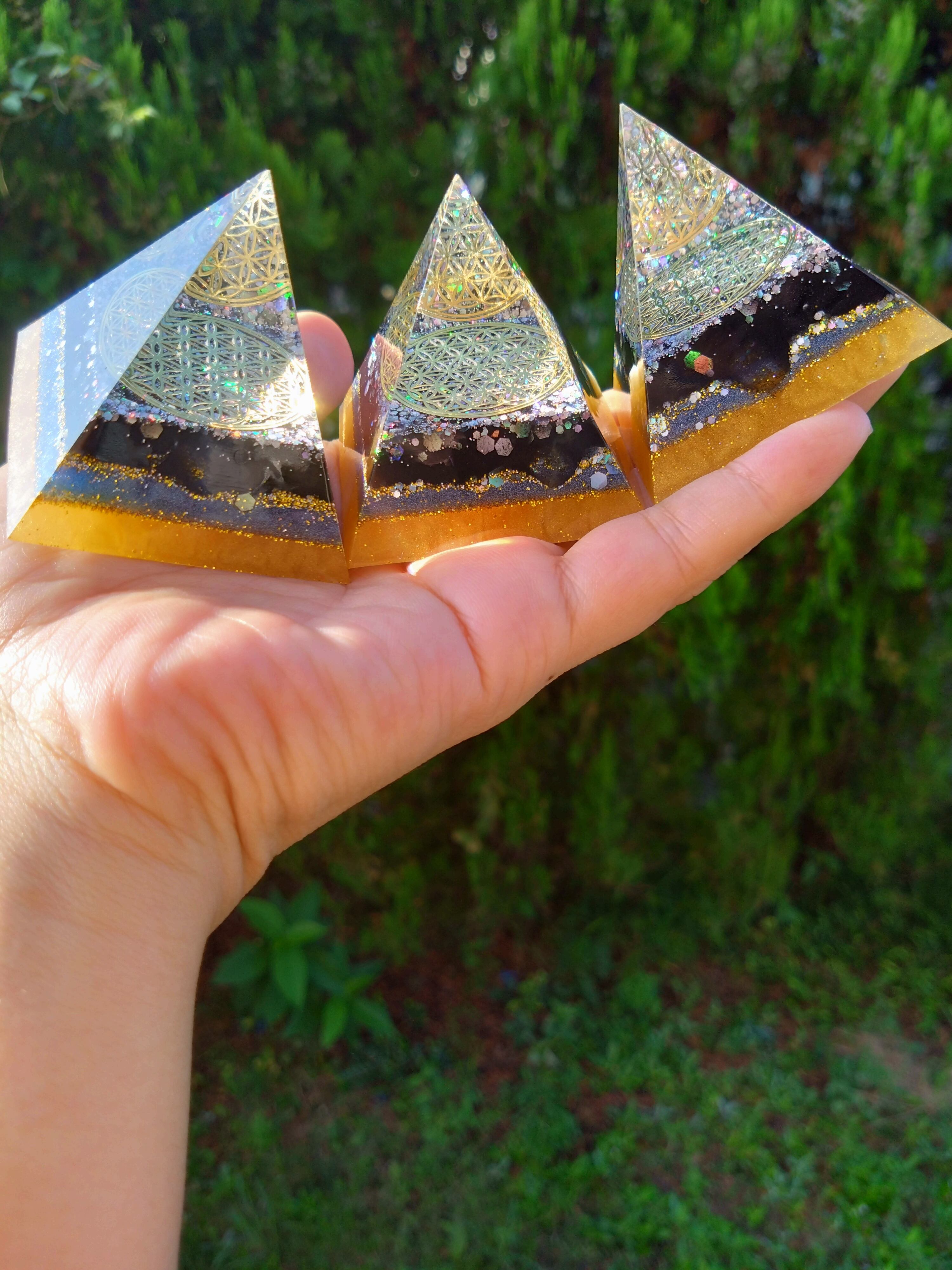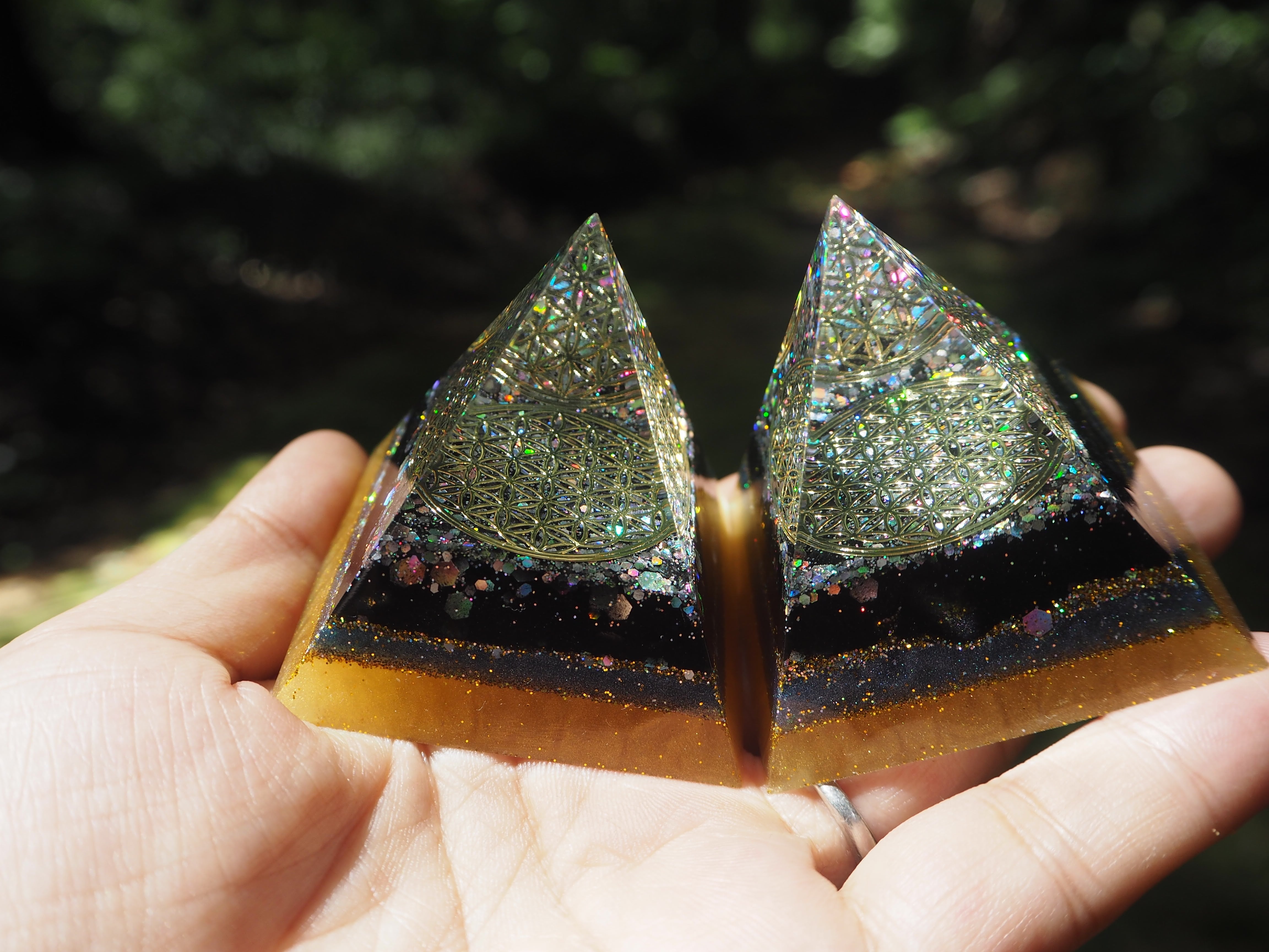 こちらは宮古島麻炭入り結界・浄化が得意な宇宙オルゴナイトです✨