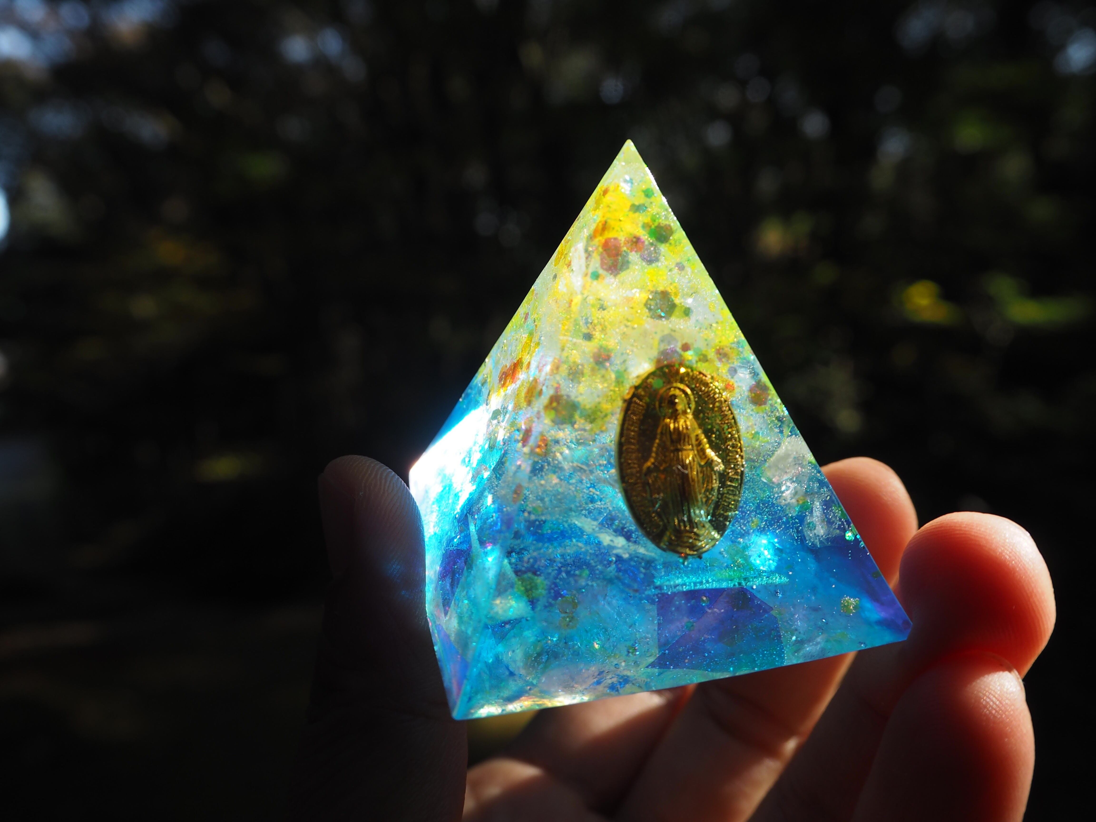 こちらは、満月生まれた✨奇跡を起こすカトリックの巡礼地ルルドの泉の聖水が入ったマリア様のオルゴナイトです✨