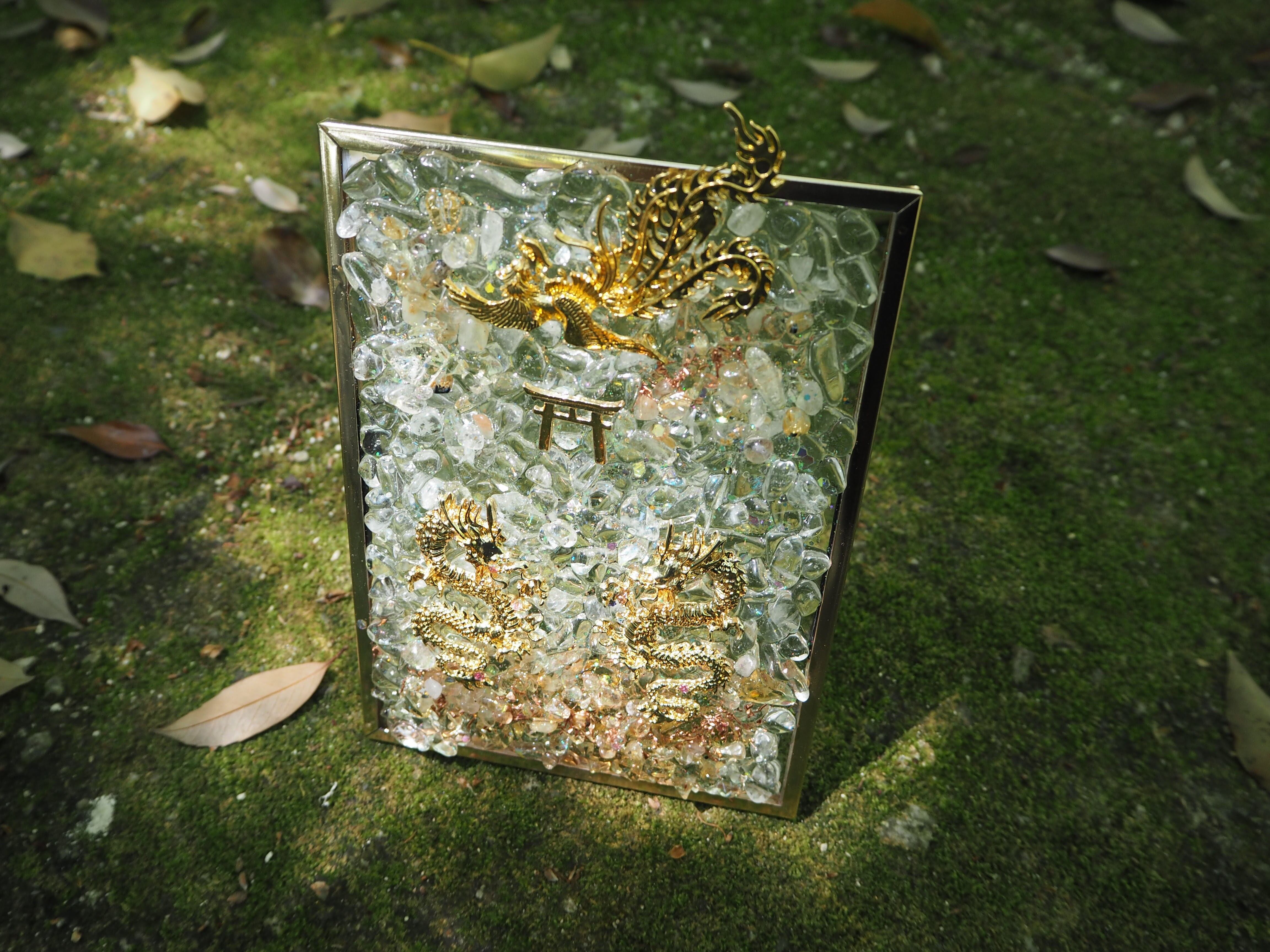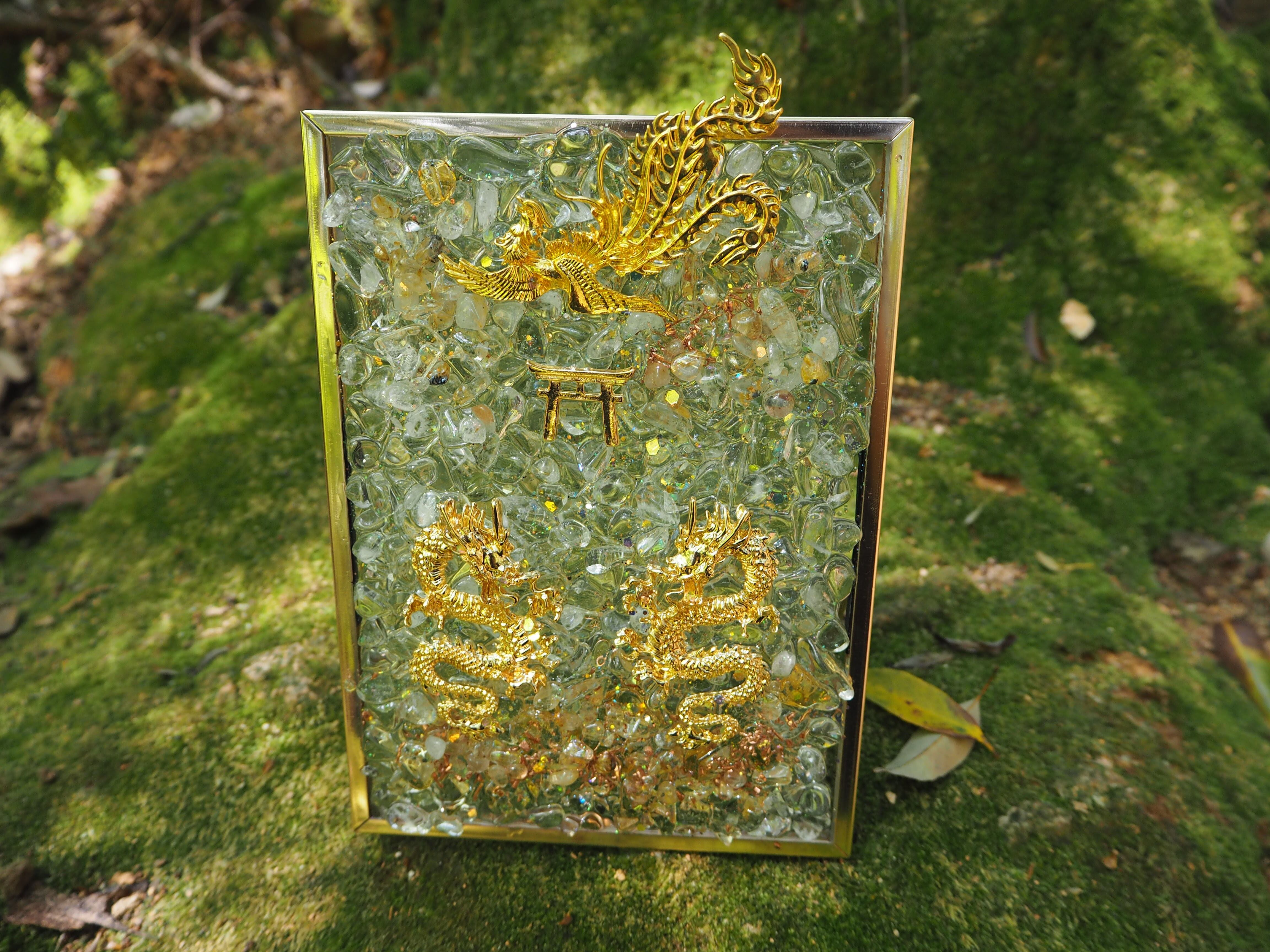 こちらは、鳳凰と龍のスタンドオルゴナイトです✨中央部に鳥居を置きました。