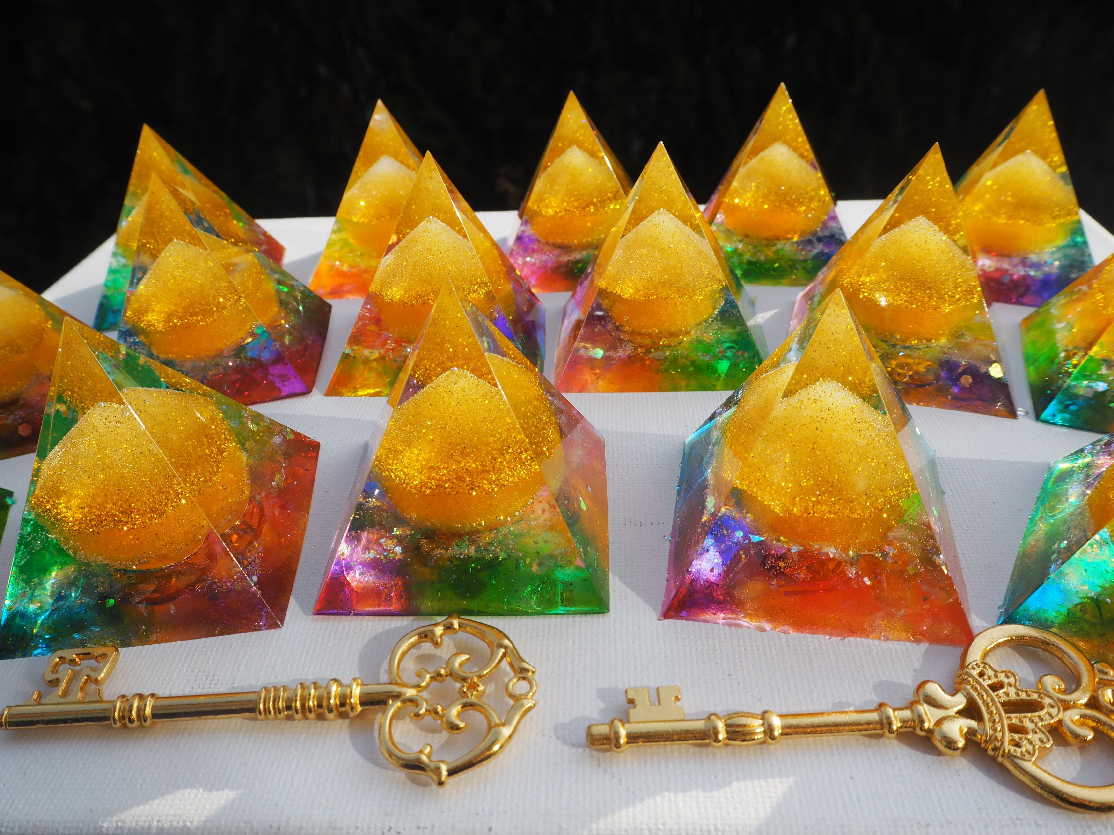 専用:(再販ミニサイズ):大島・御嶽神社他2社と夢の小夜島の封印解除後のエネルギーを封入した希望の扉を開くオルゴナイト(鍵付き)