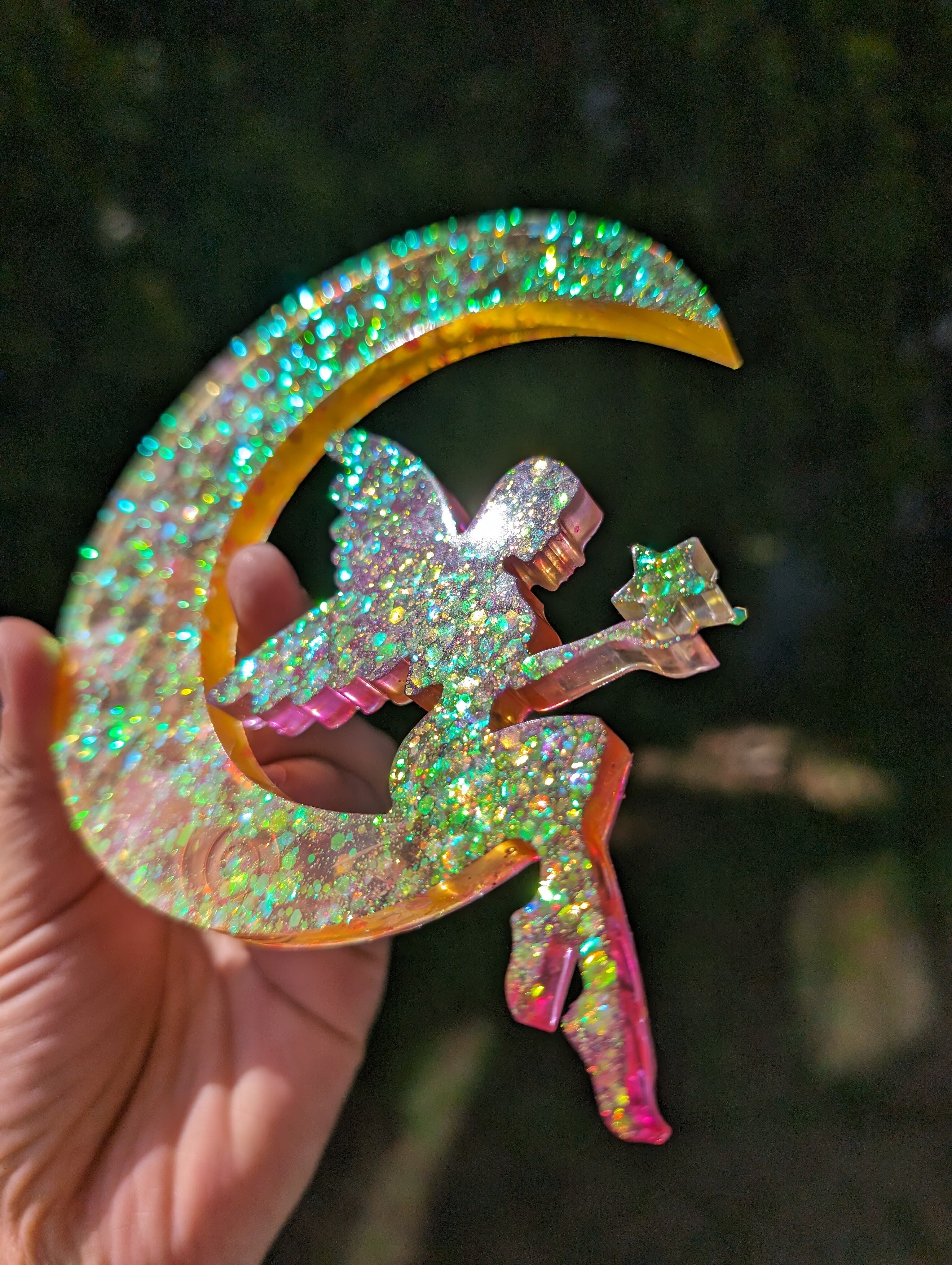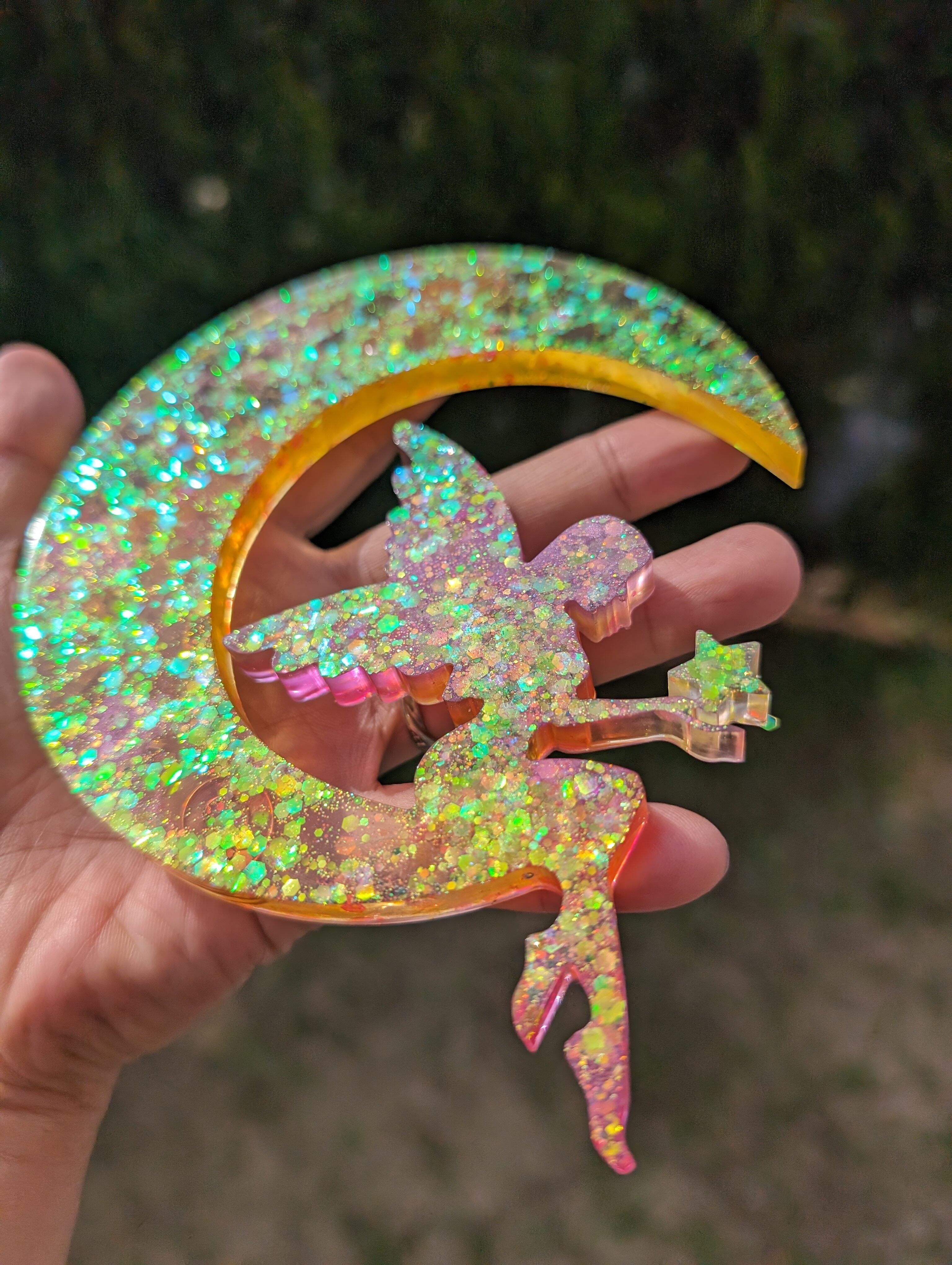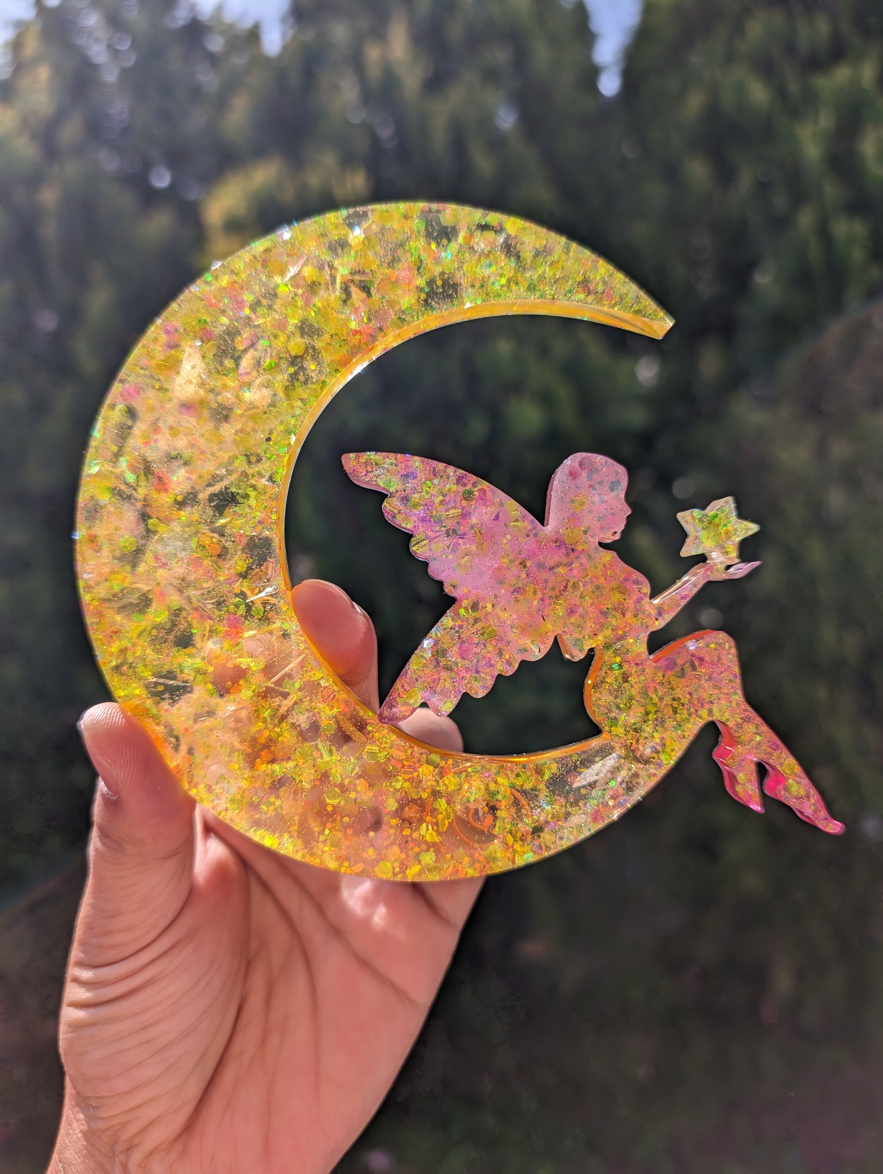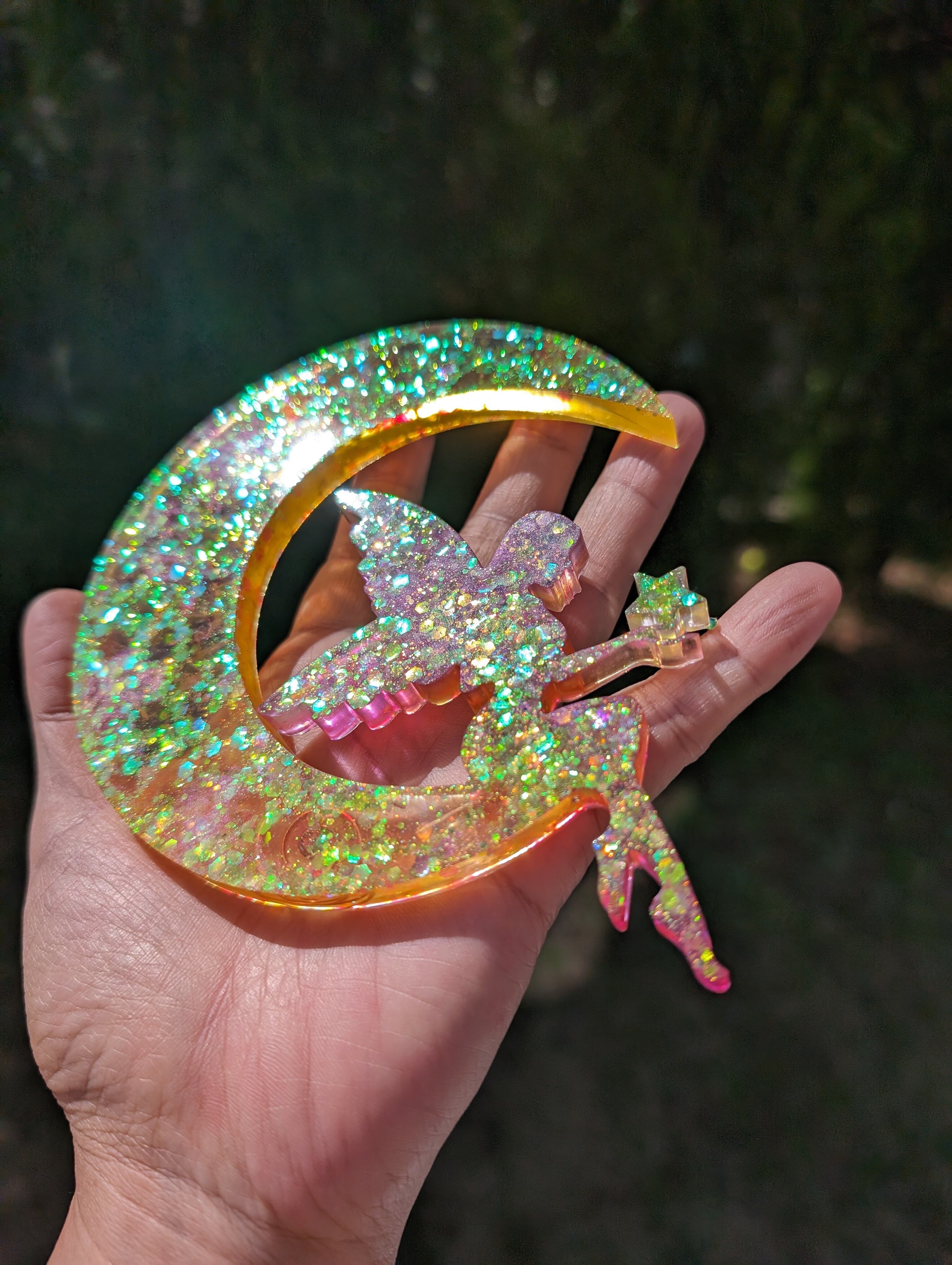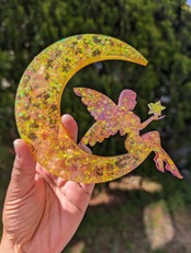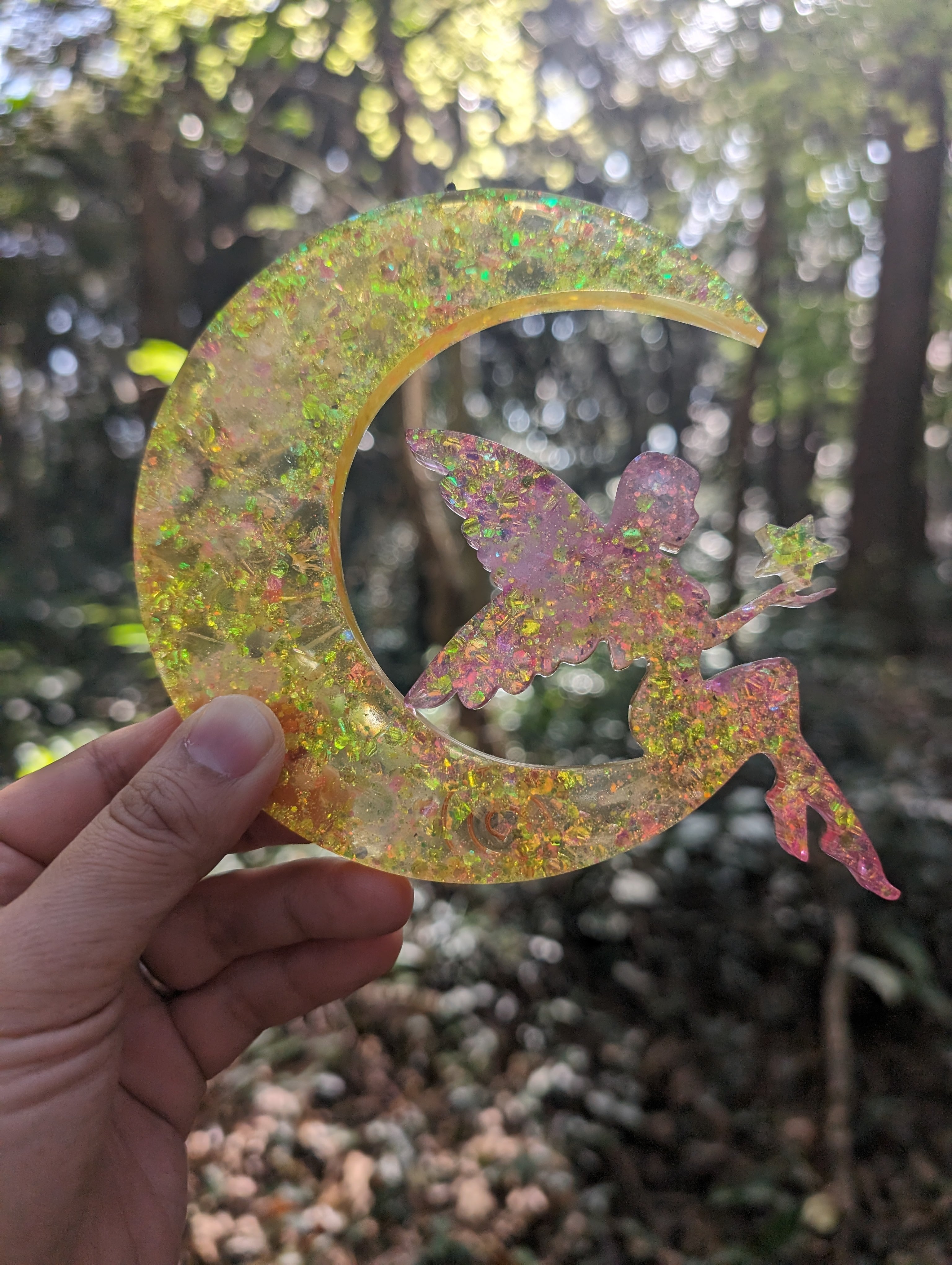 こちらは、月とティンカーベルのオルゴナイトです✨ キラッキラの三日月の上に座っているティンカーベル☺️☺️とっても可愛いです✨✨✨