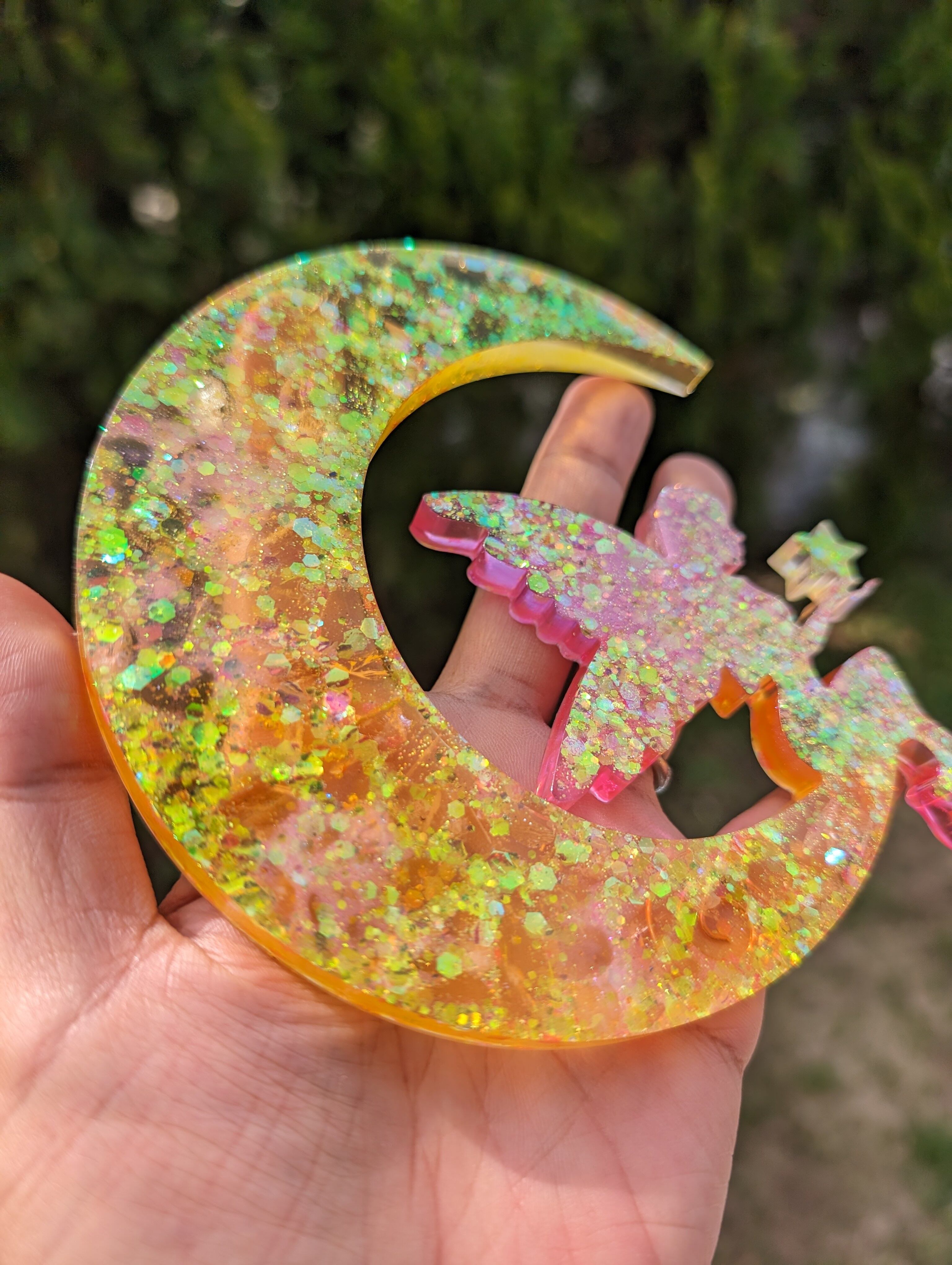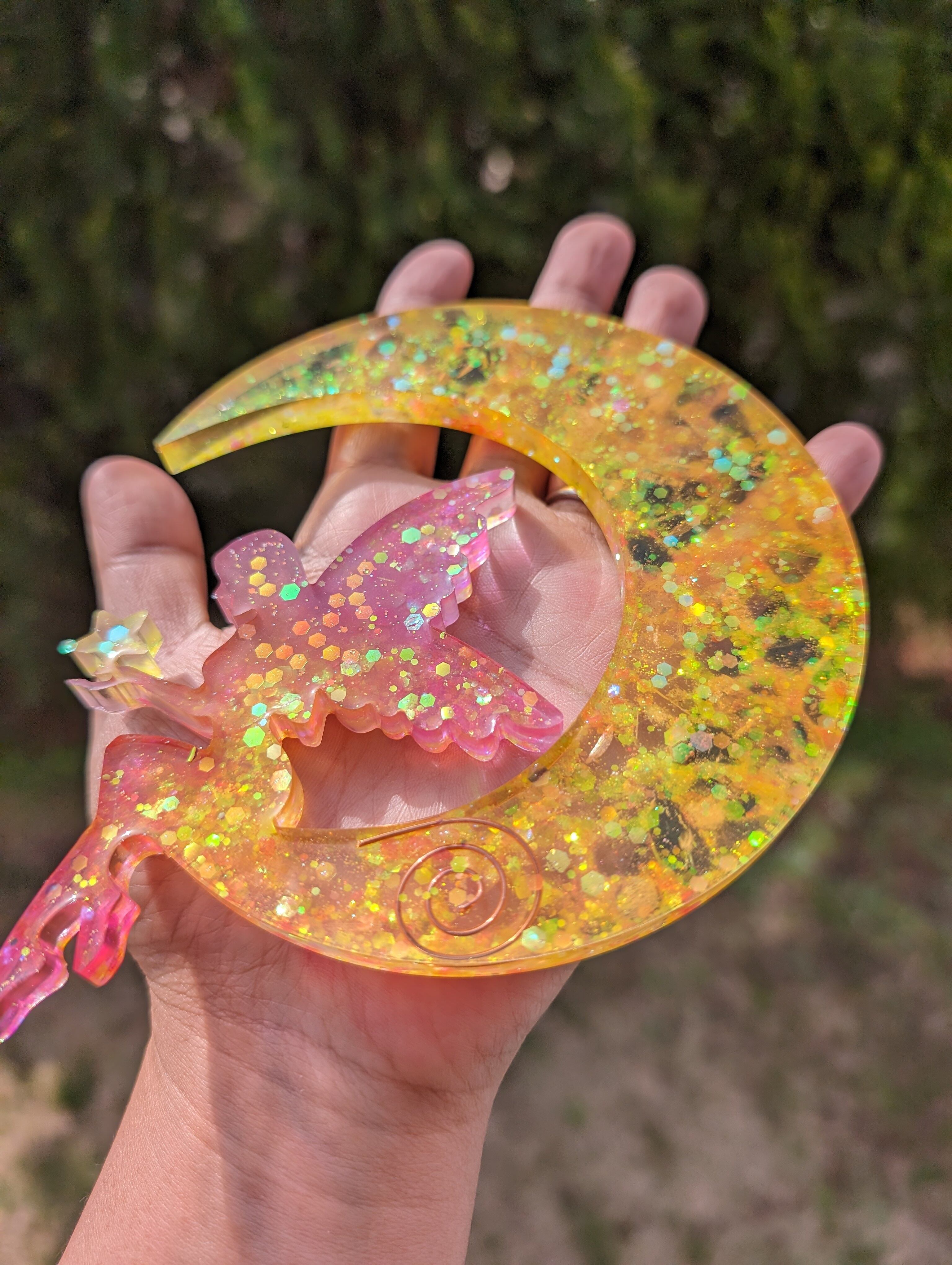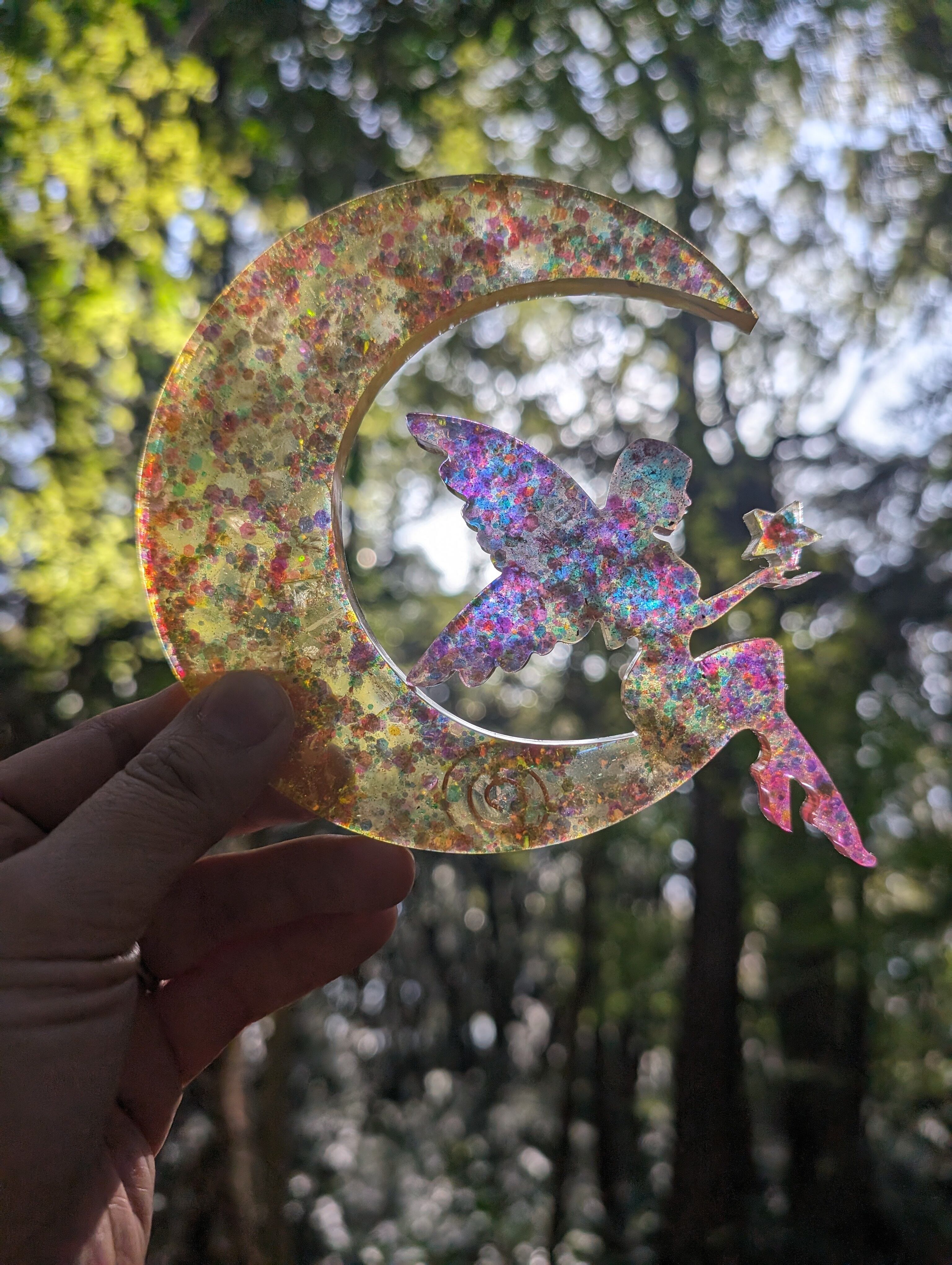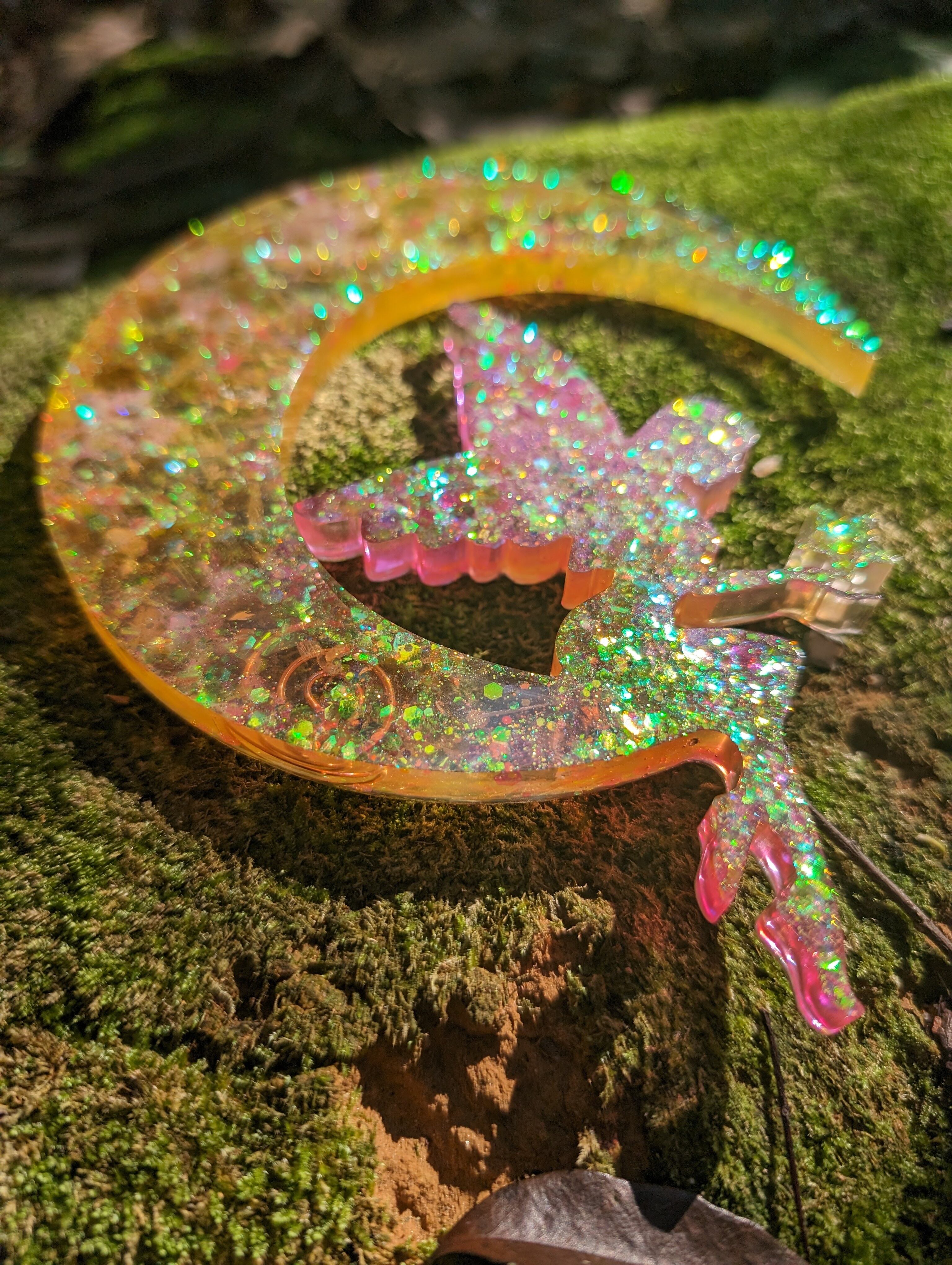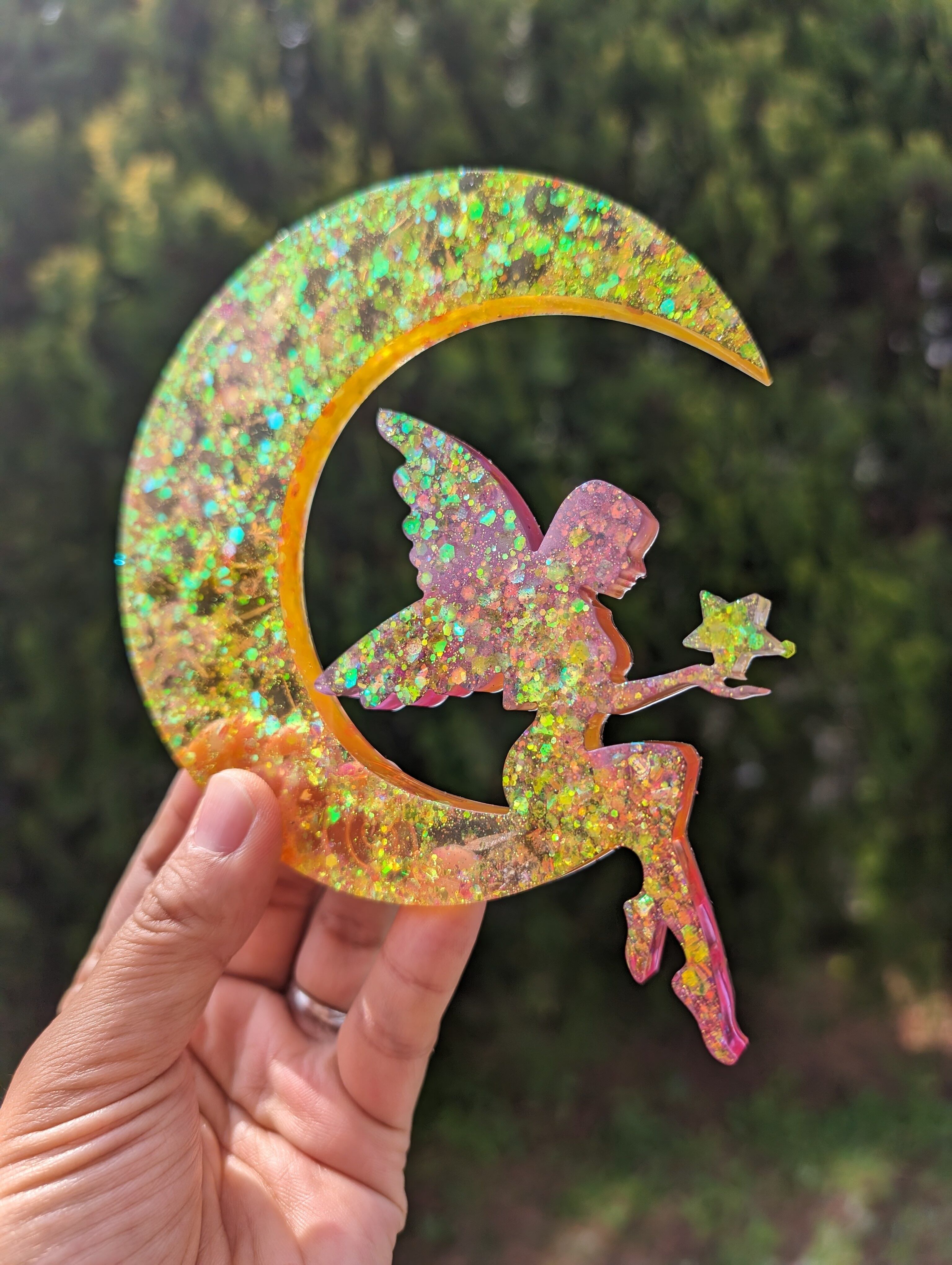 こちらは、月とティンカーベルのオルゴナイトです✨ キラッキラの三日月の上に座っているティンカーベル☺️☺️とっても可愛いです✨✨✨