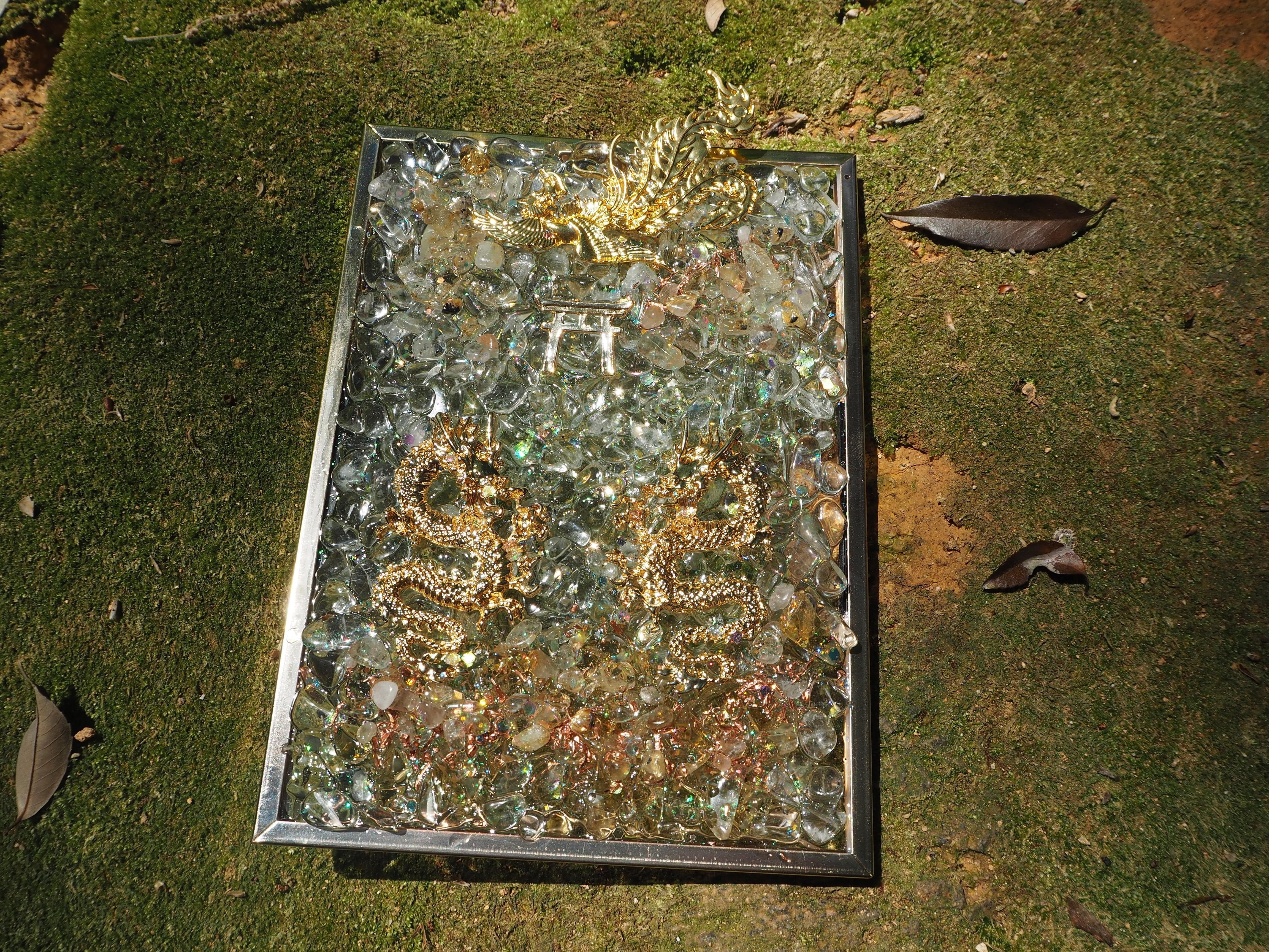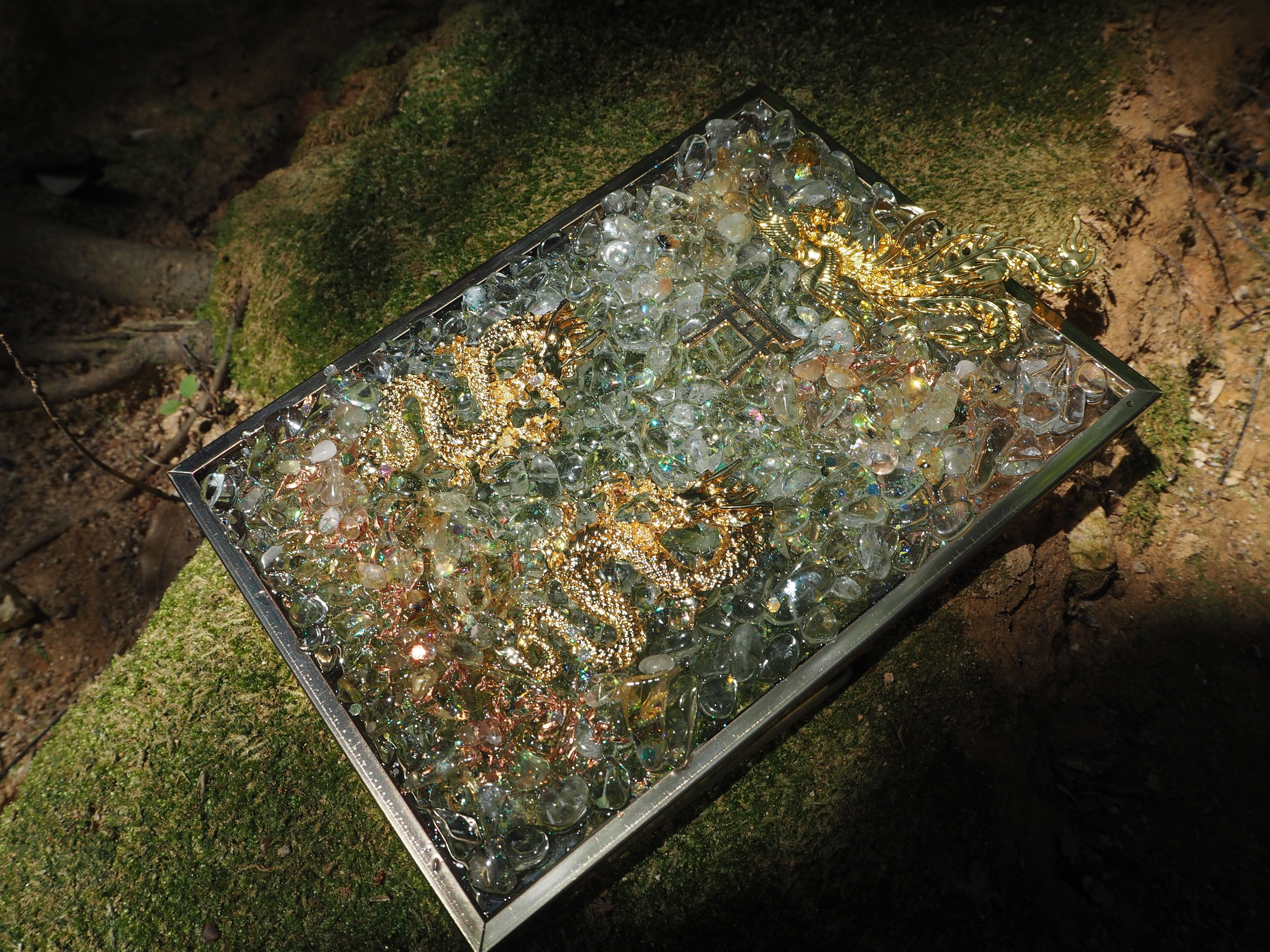 A5ランクの水晶を全面に、そして天然石のルチルクォーツ、シトリンも封入致しました。