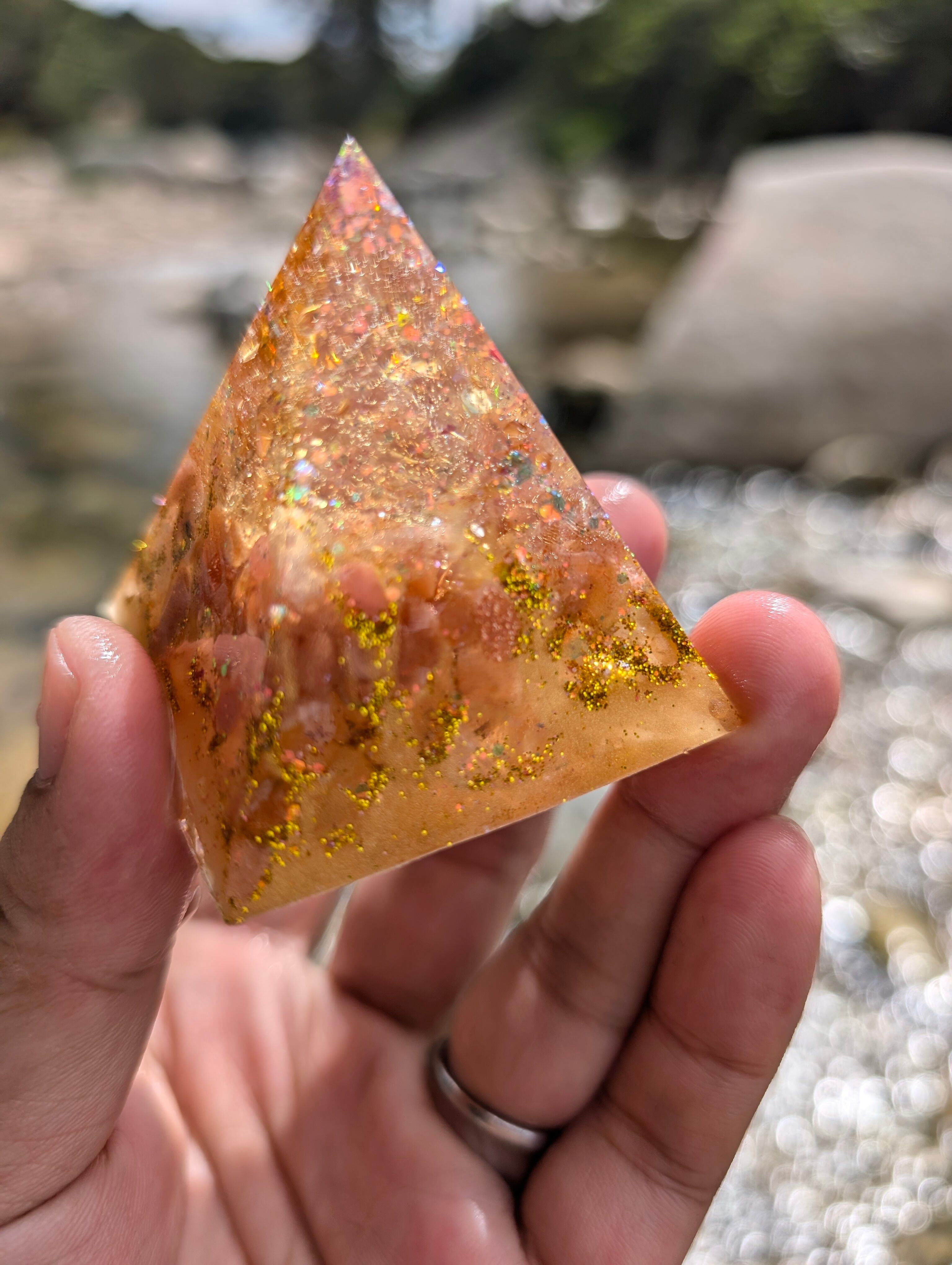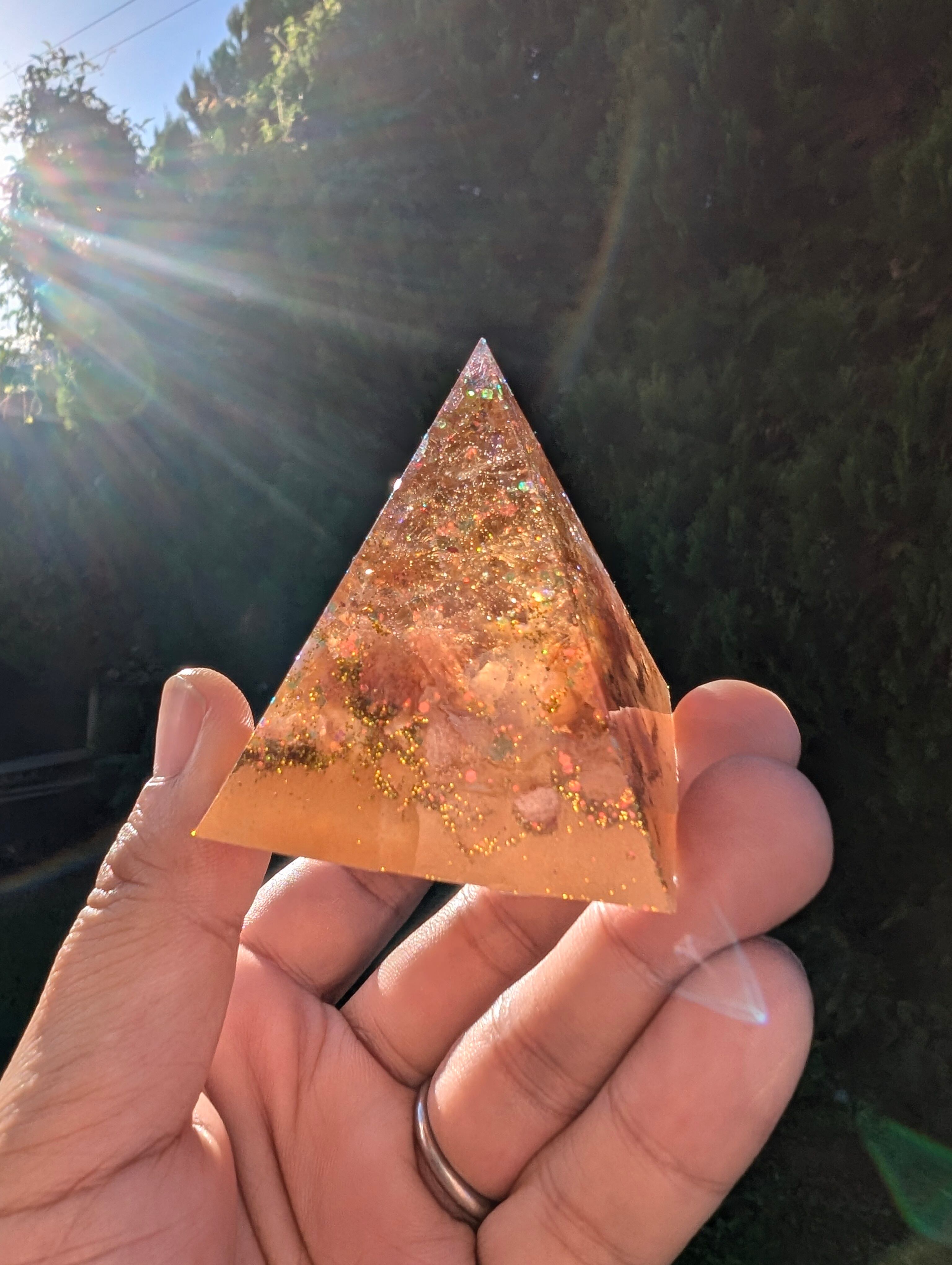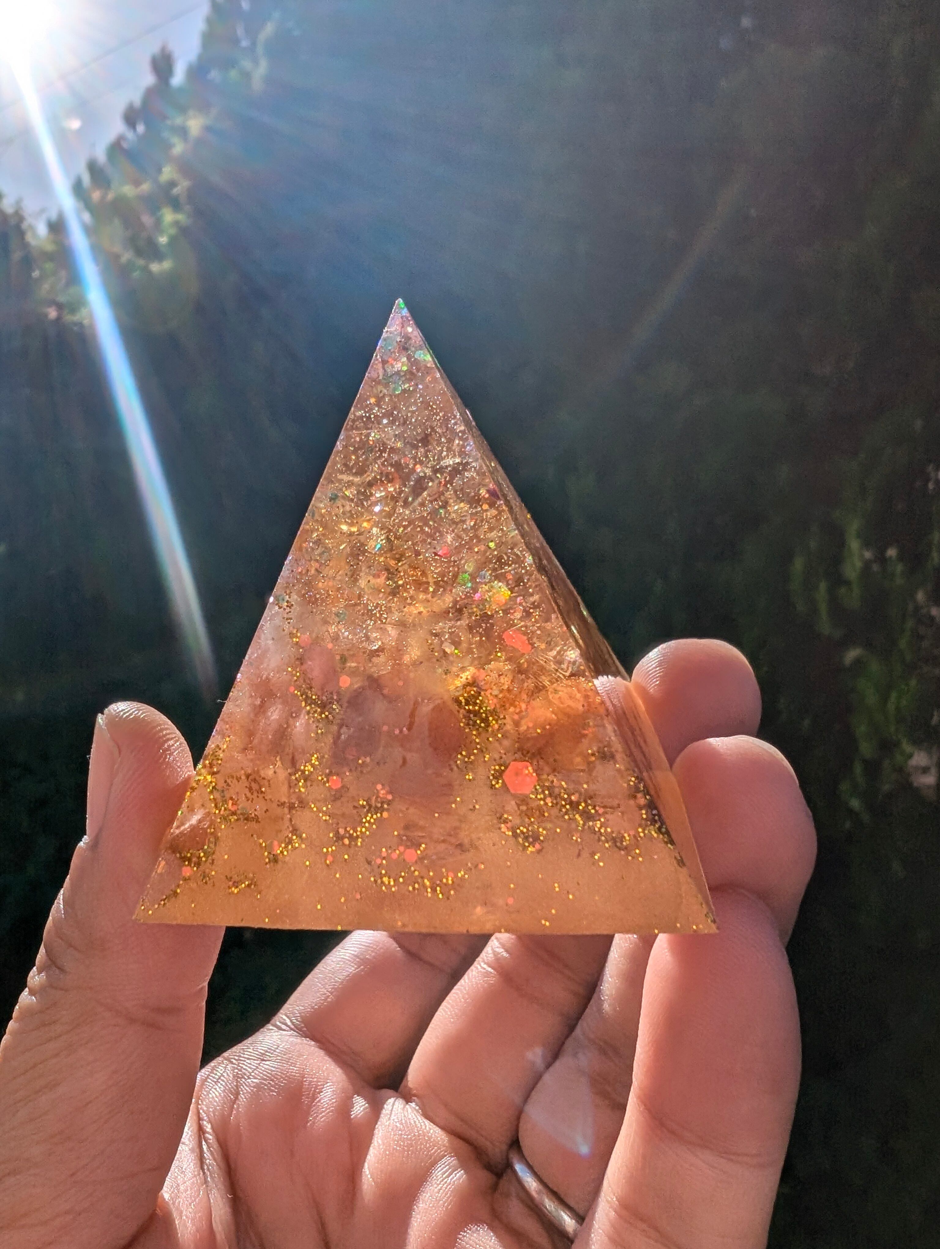 こちらは、満月に制作!叶えたい夢や目標に向けてサポートする✨金運巡るオルゴナイトです!
