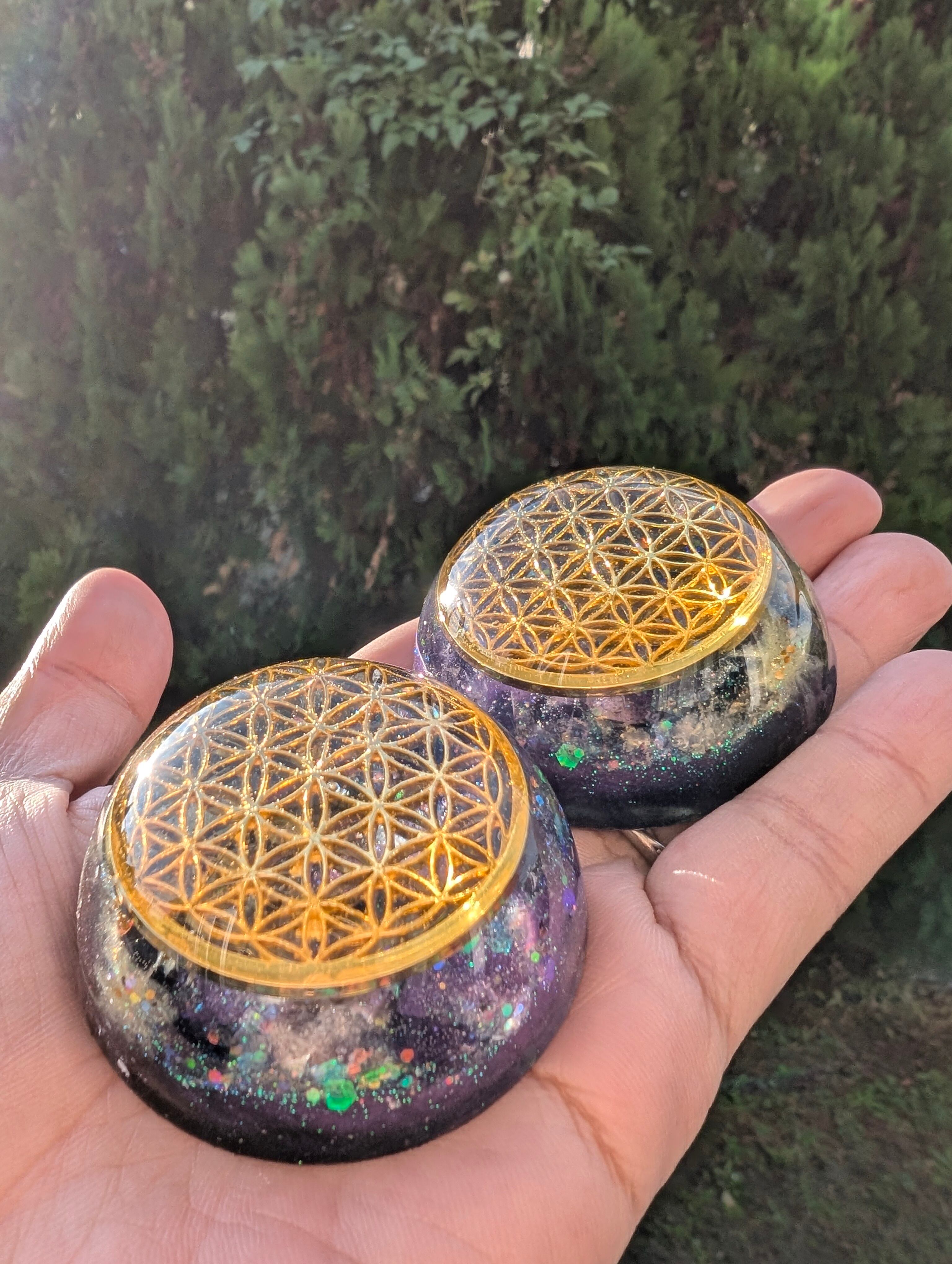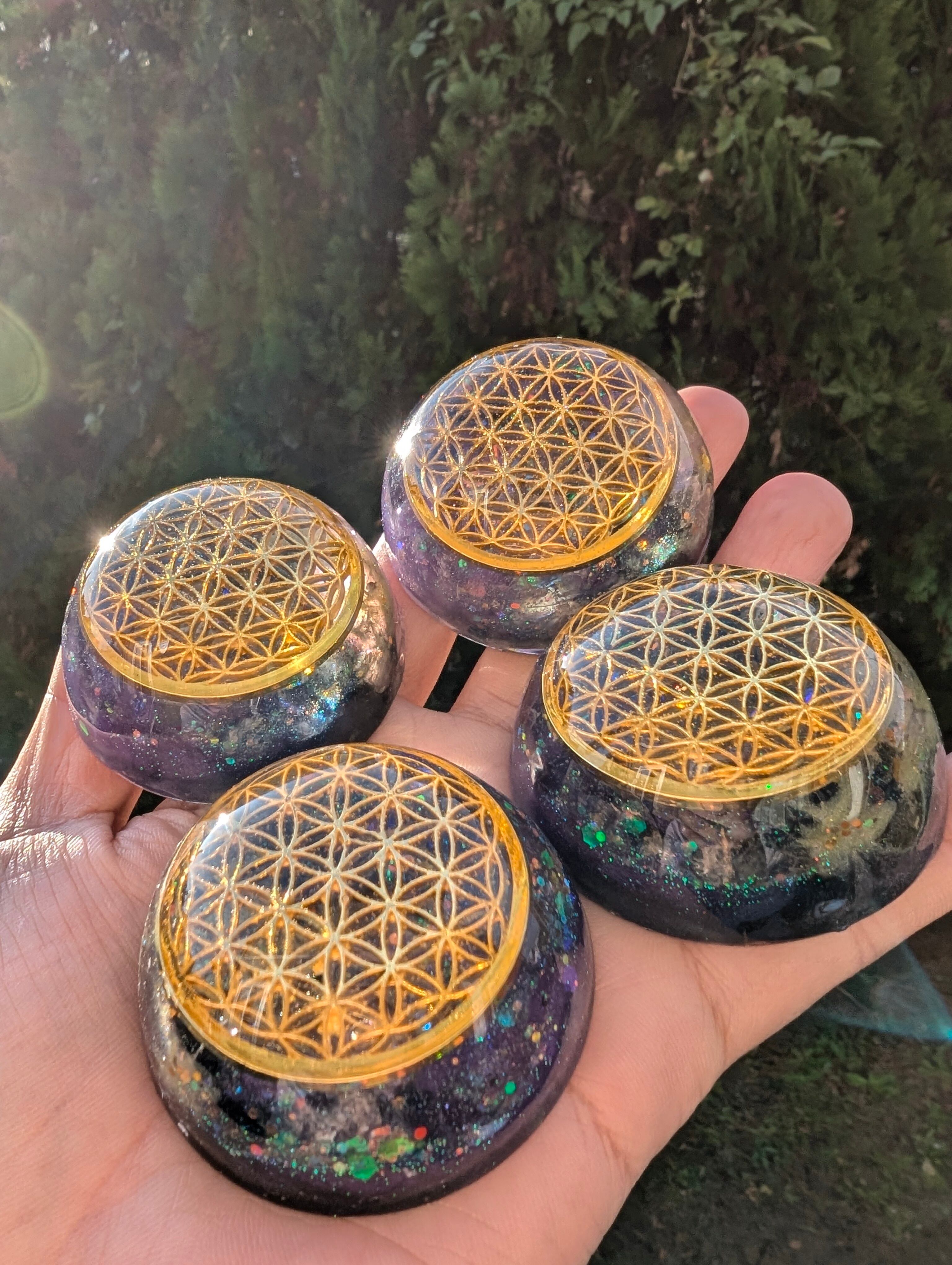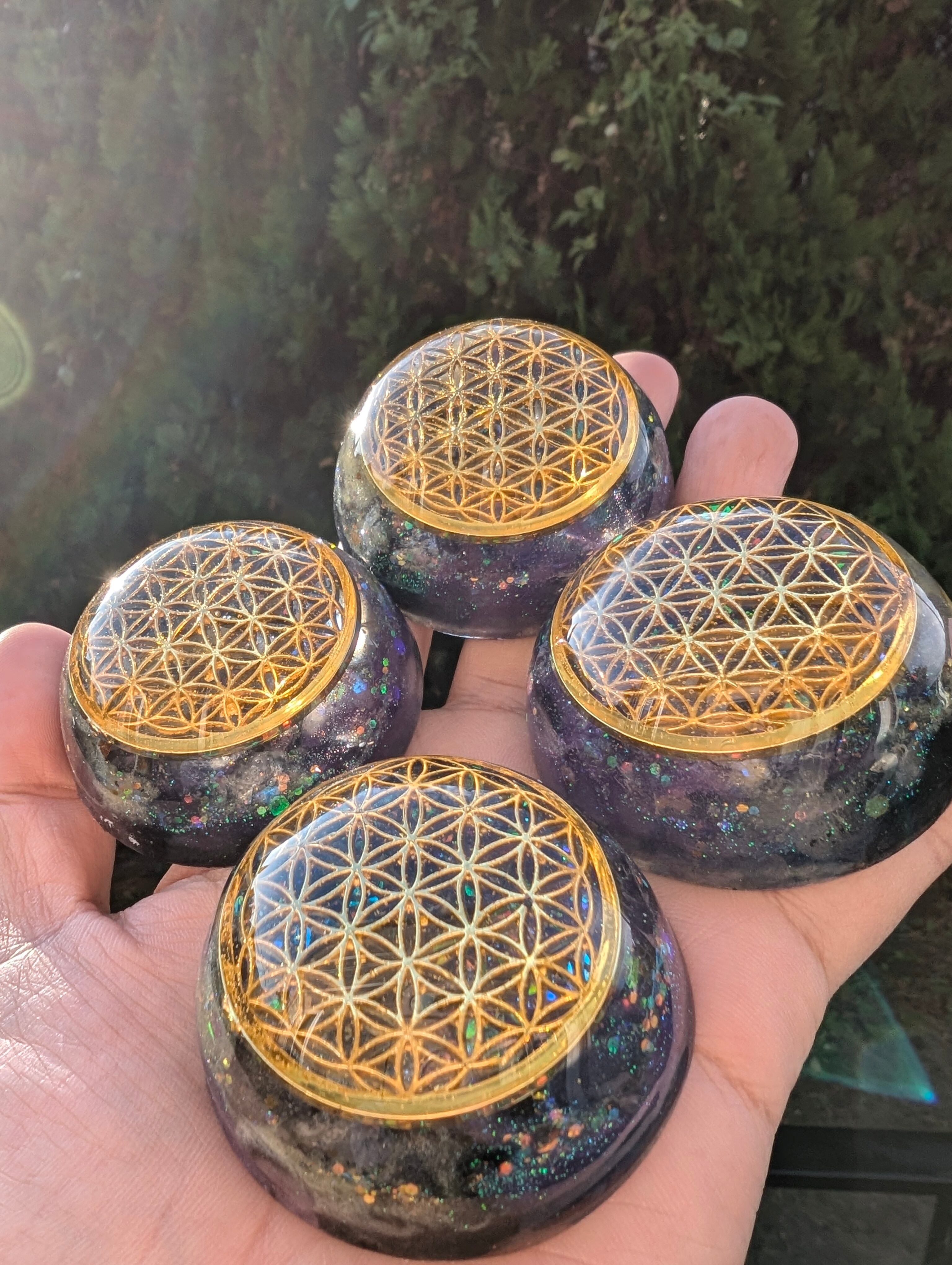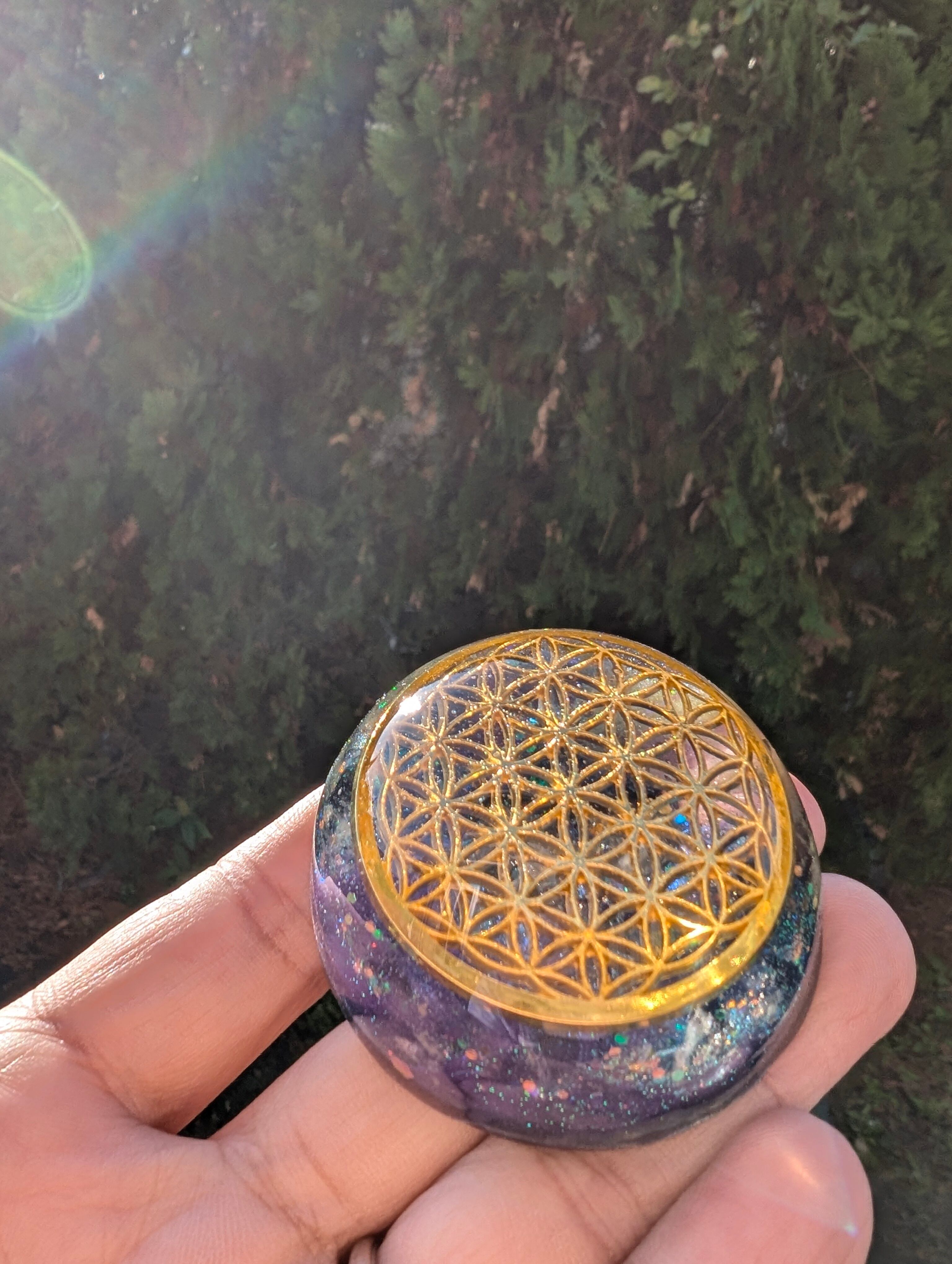 そして中央には、古代神聖幾何学のフラワー・オブ・ライフを封入しました。フラワー・オブ・ライフは、生命の創造パターンや宇宙の根源を表すシンボルです。