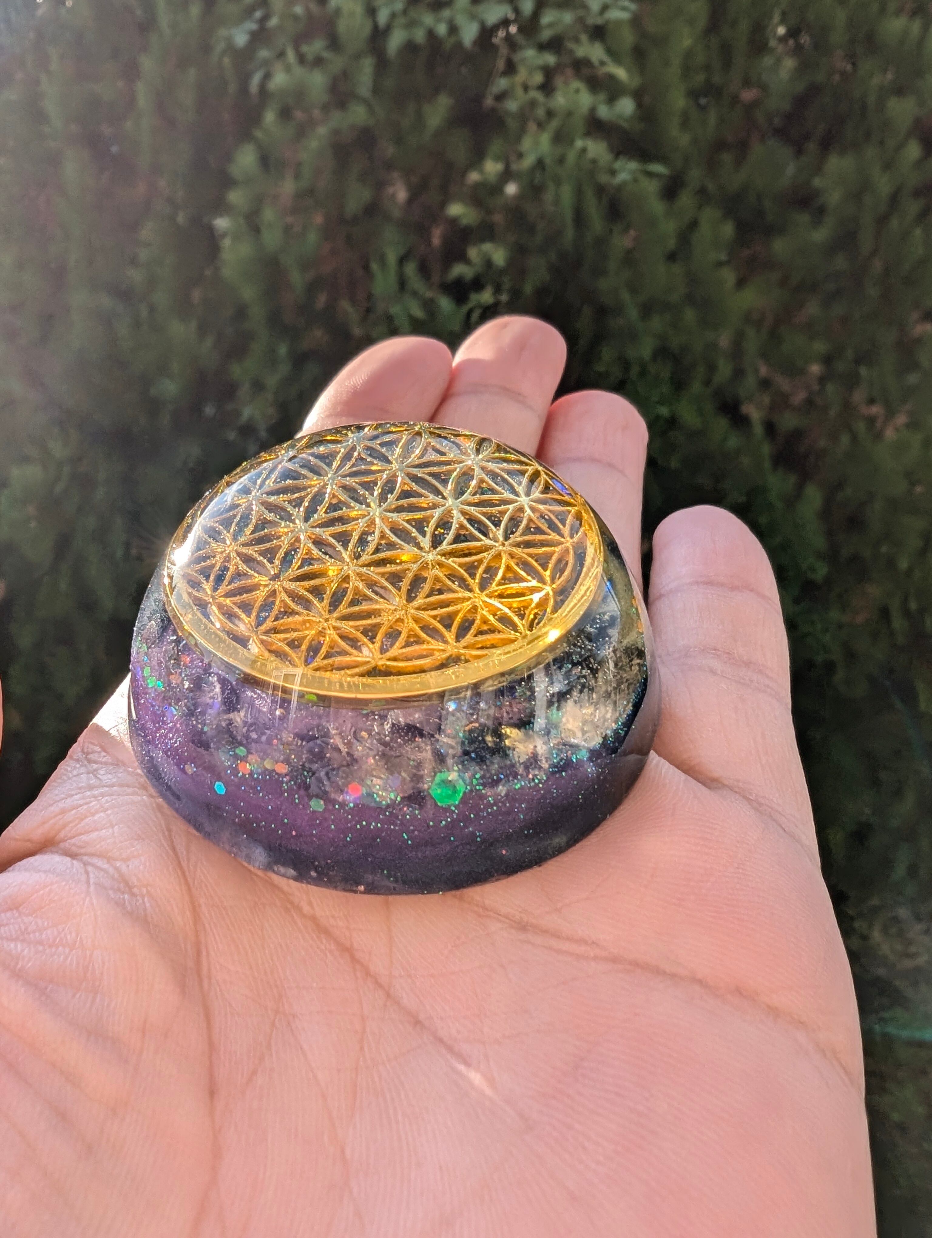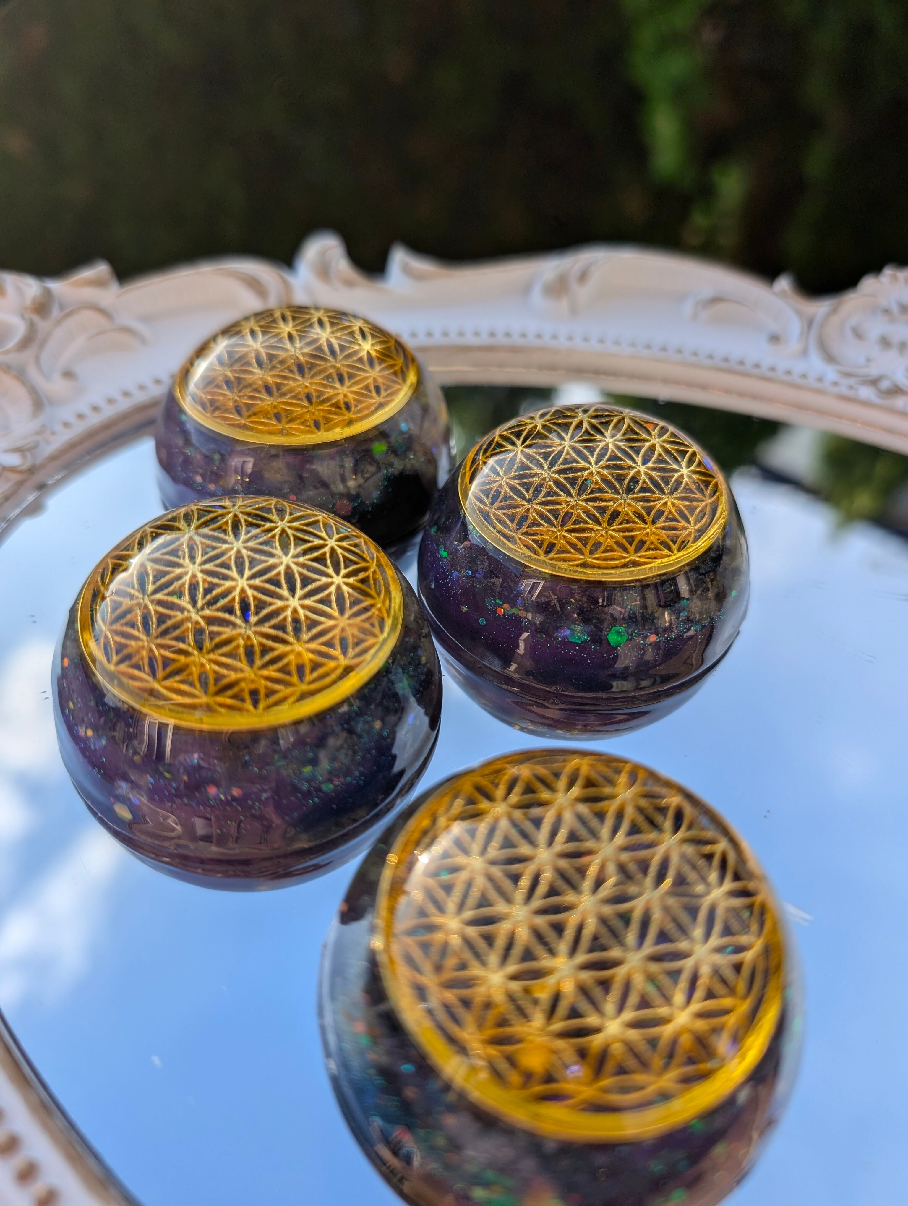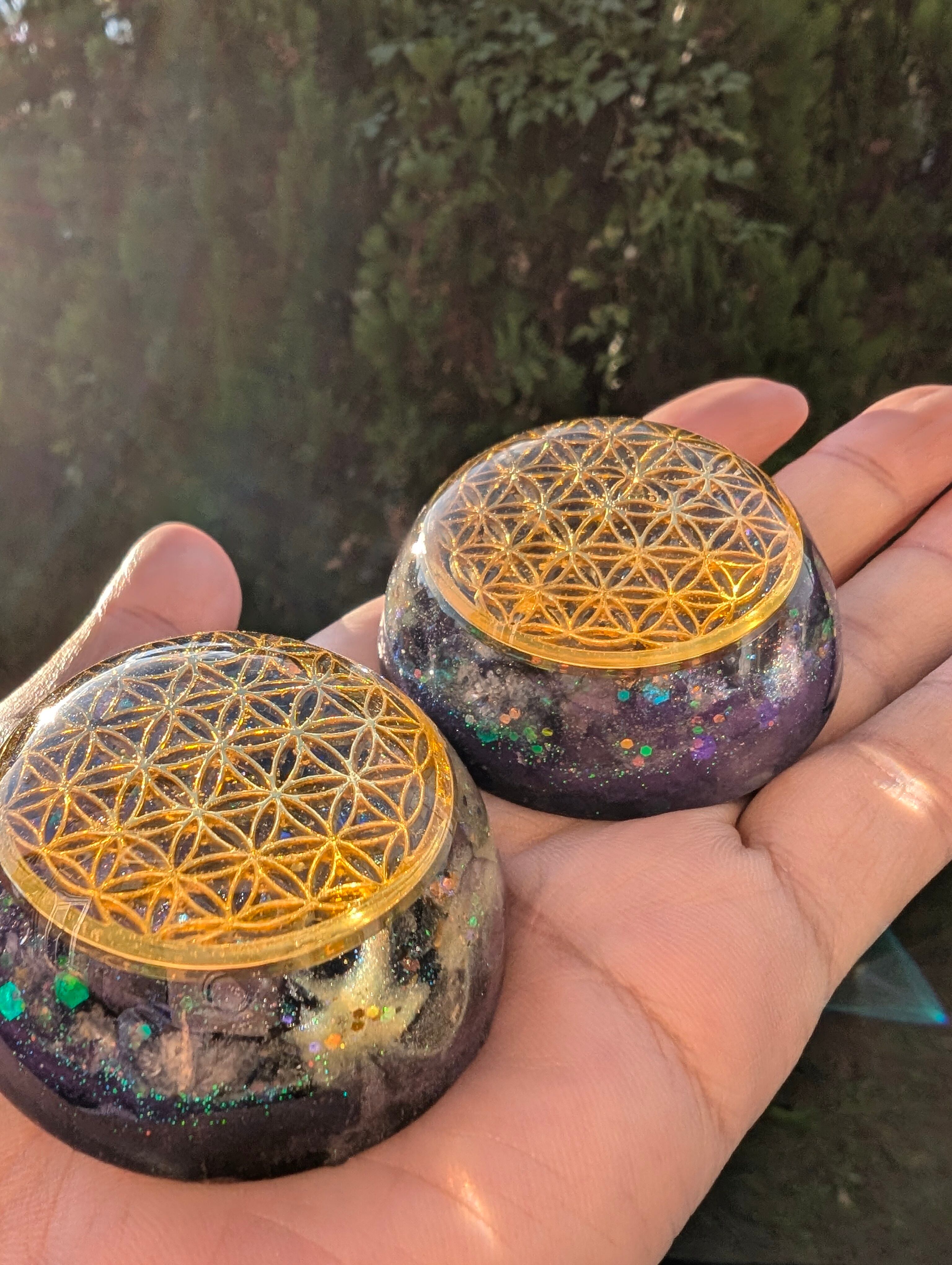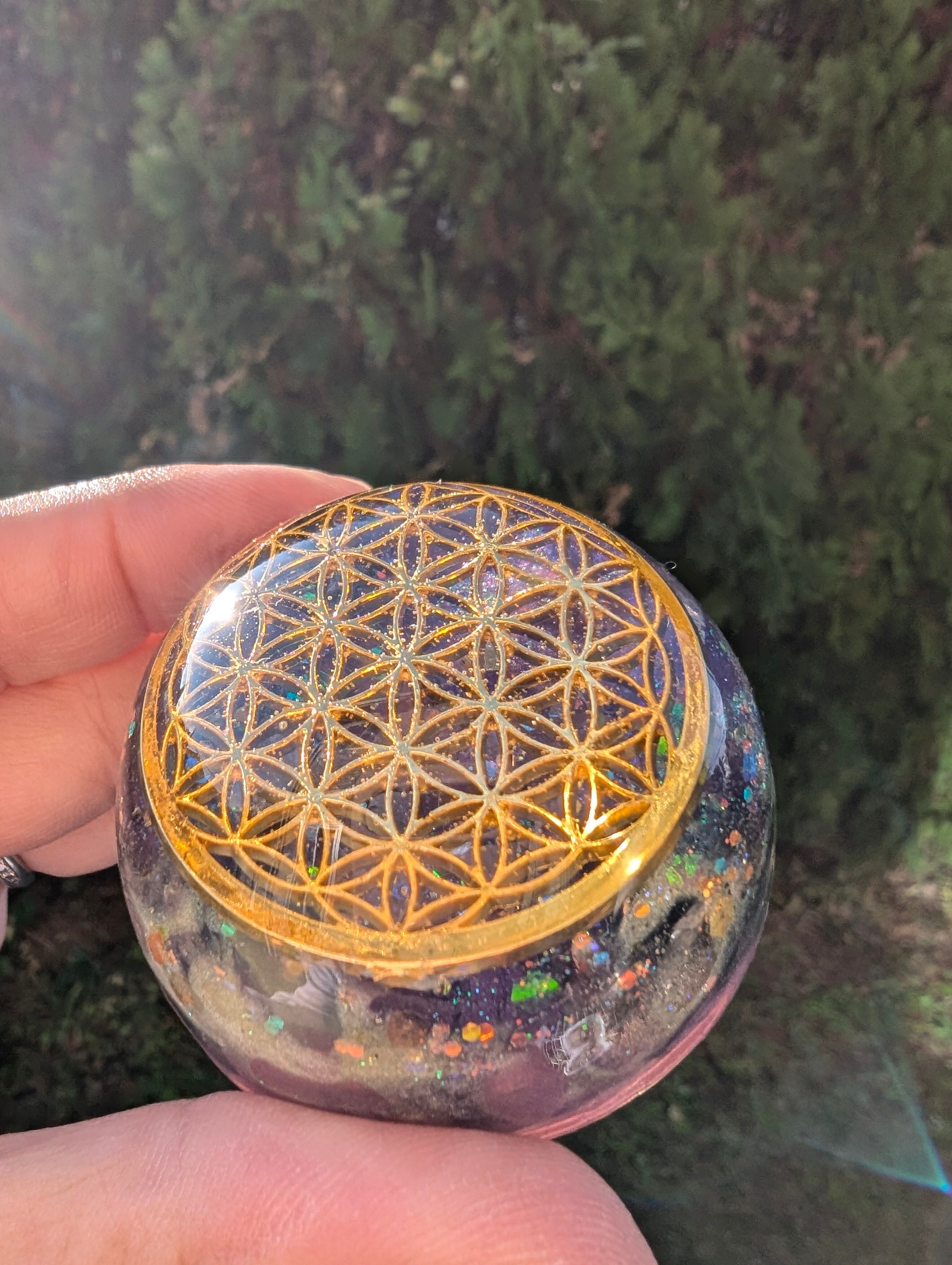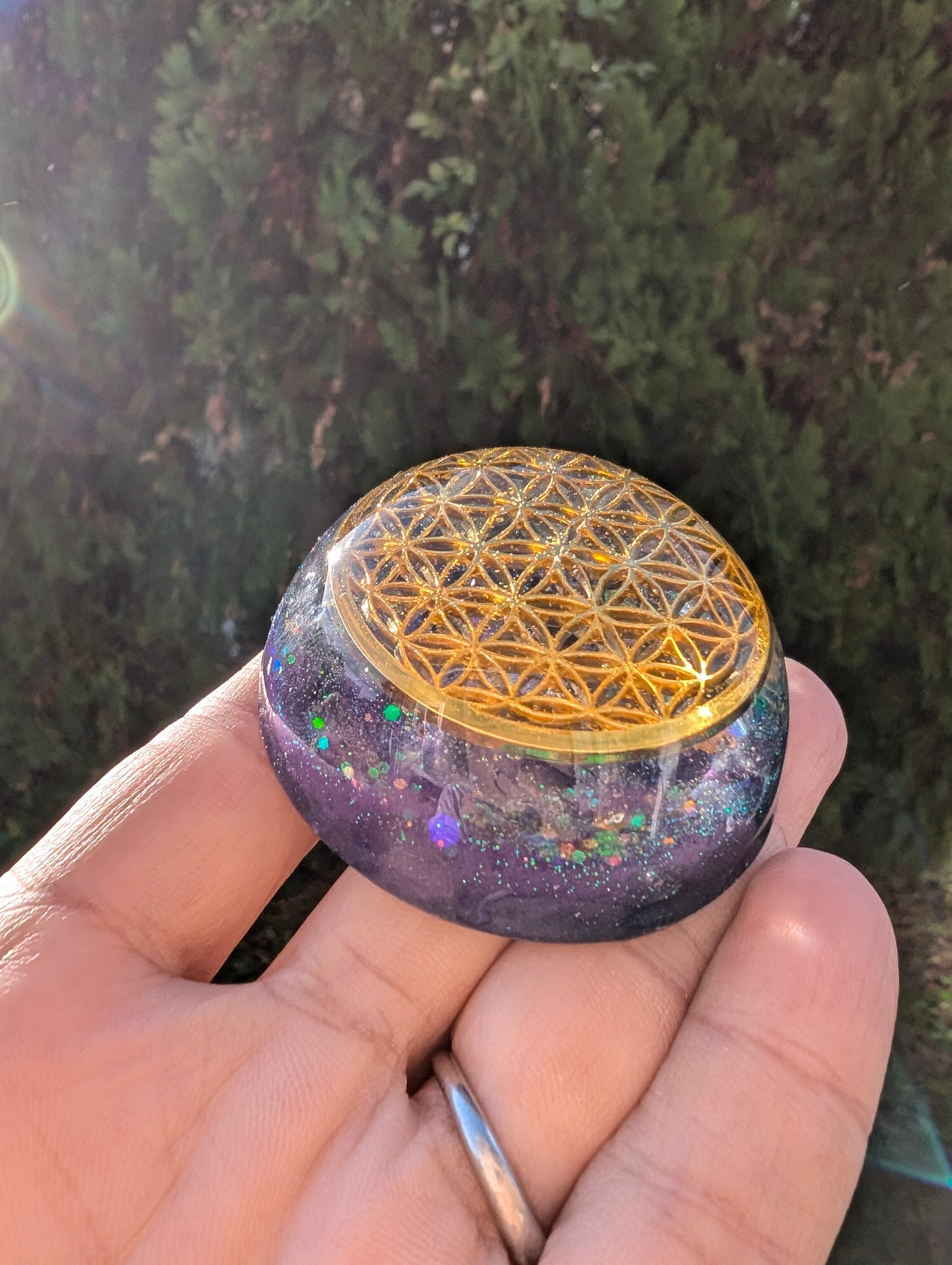 そして中央には、古代神聖幾何学のフラワー・オブ・ライフを封入しました。フラワー・オブ・ライフは、生命の創造パターンや宇宙の根源を表すシンボルです。