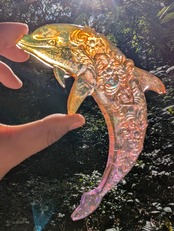 ドルフィンの体は全身が輝く光沢で包まれていて、非常に純粋な心を持っており、闇とは真逆のところにいる生き物で、悪を消し去る強いパワーを持っていると言われています。
