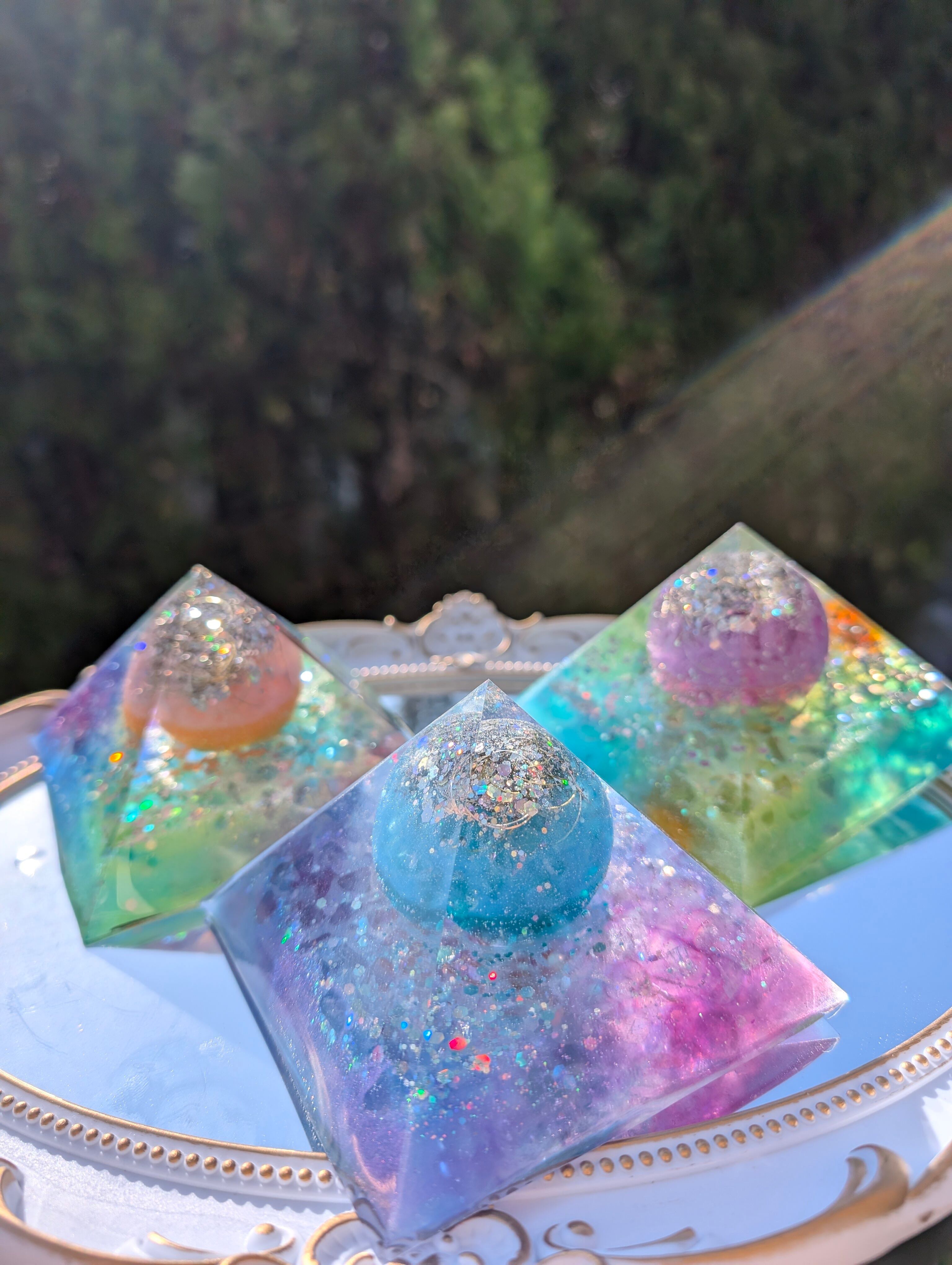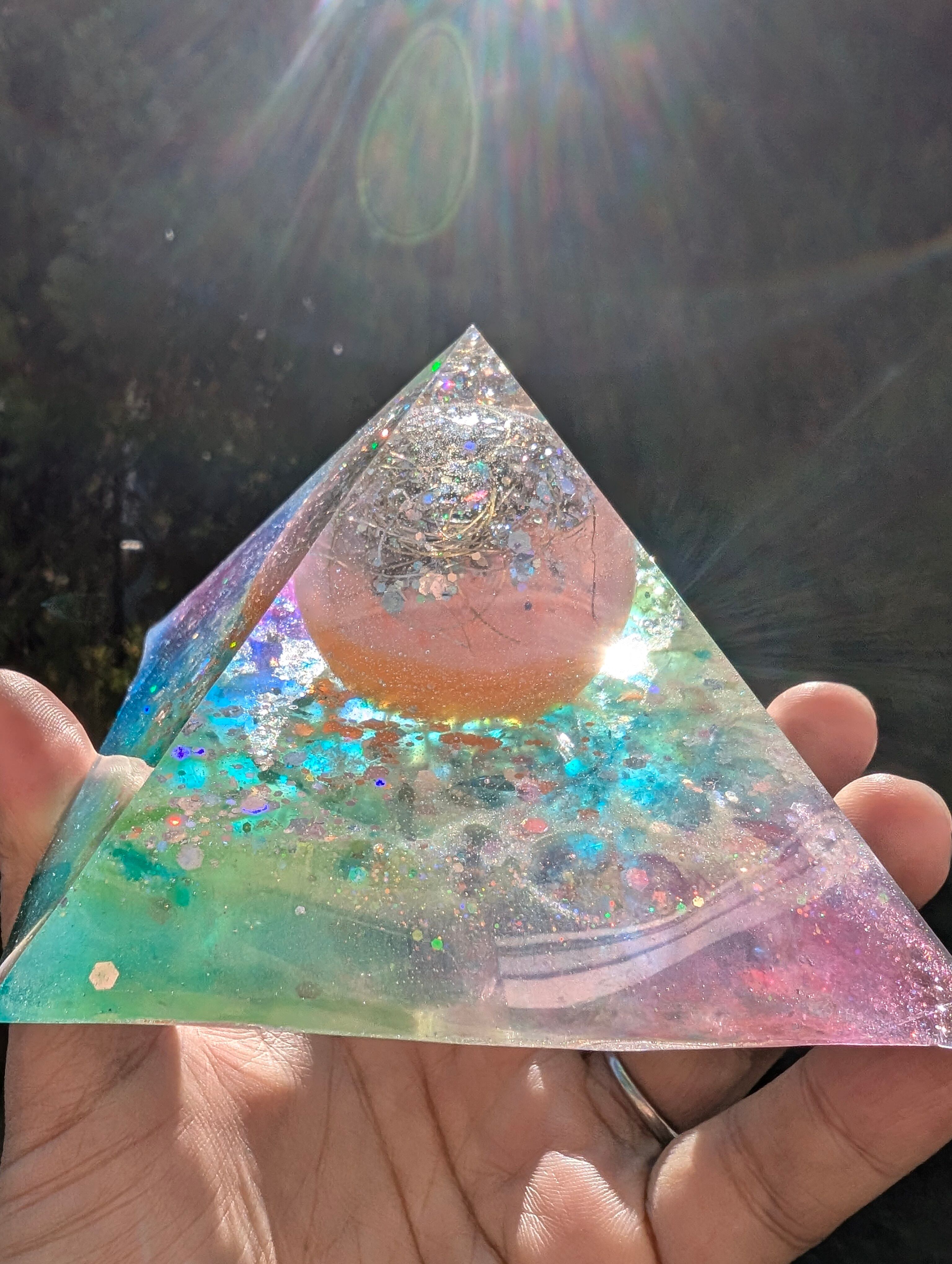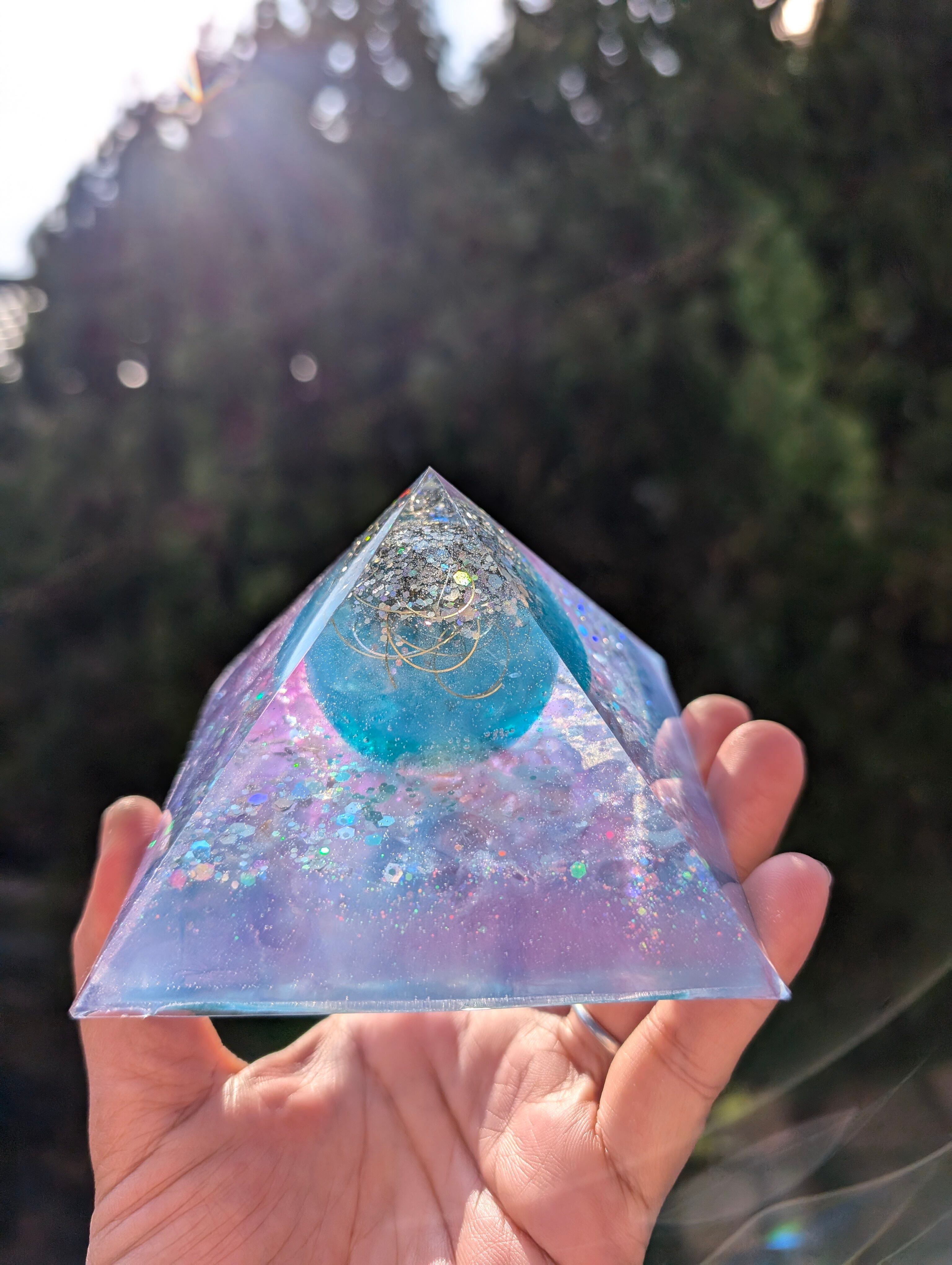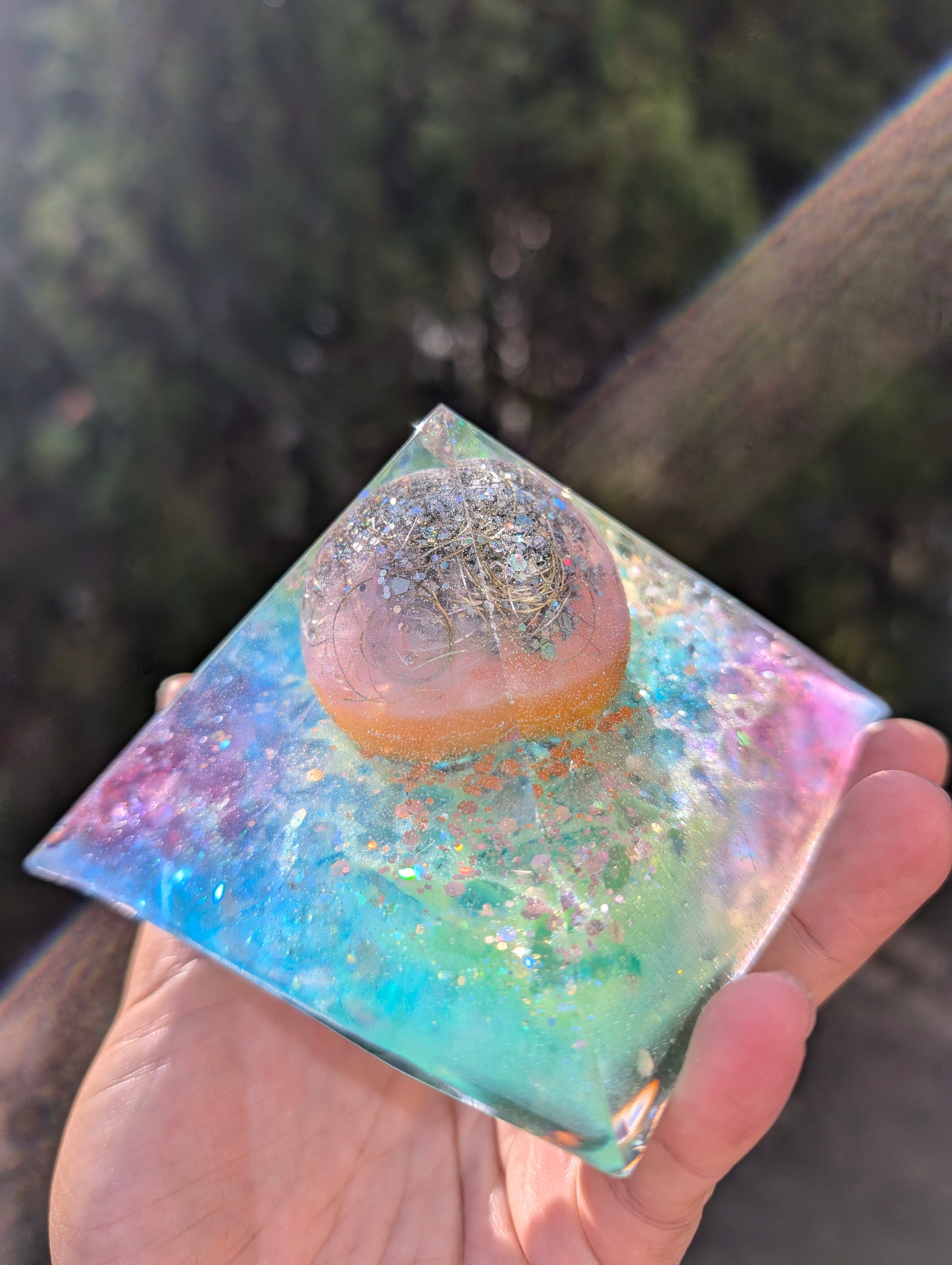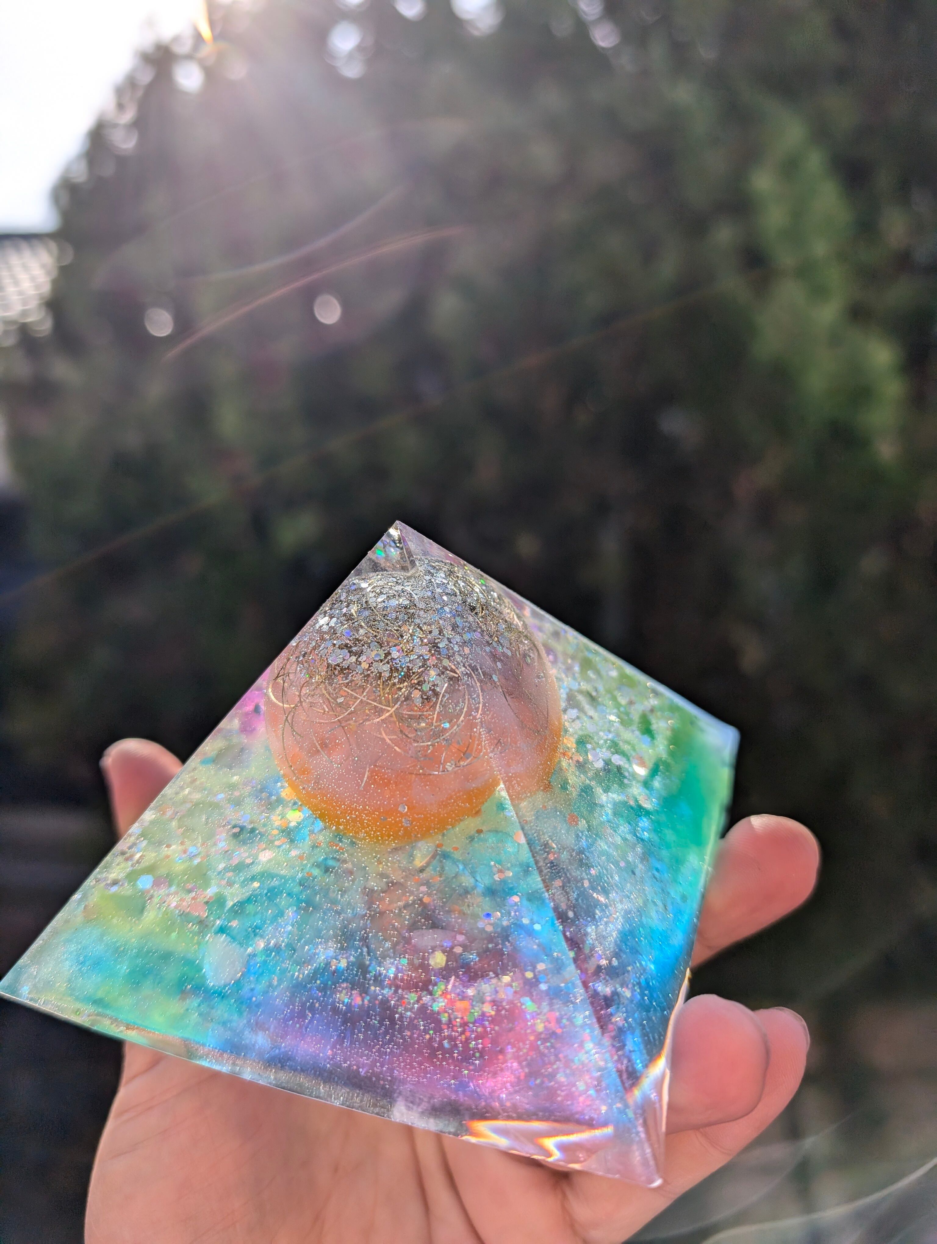 中央部には、キラキラ輝くオルゴナイトでできた光の玉エナジーボール。